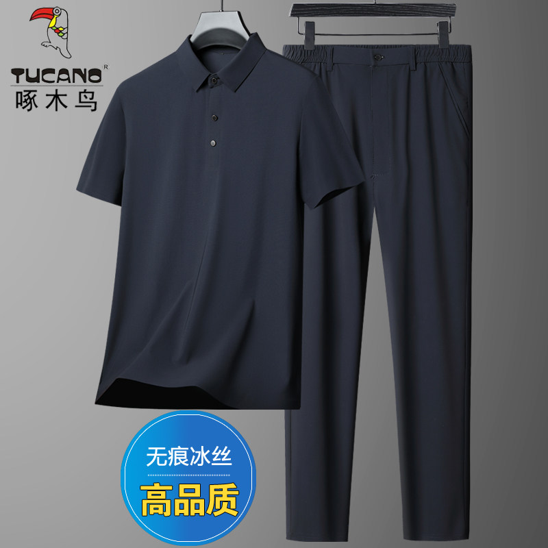 Летний шелковый быстросохнущий тонкий комплект для отдыха для пожилых людей, короткий рукав, для среднего возраста