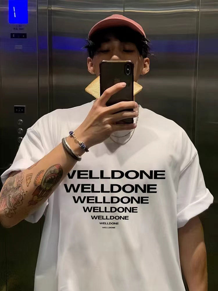 WE11DONE SHARKFACE лестничные буквы WELLDONE летняя свободная мужская футболка из чистого хлопка с короткими рукавами