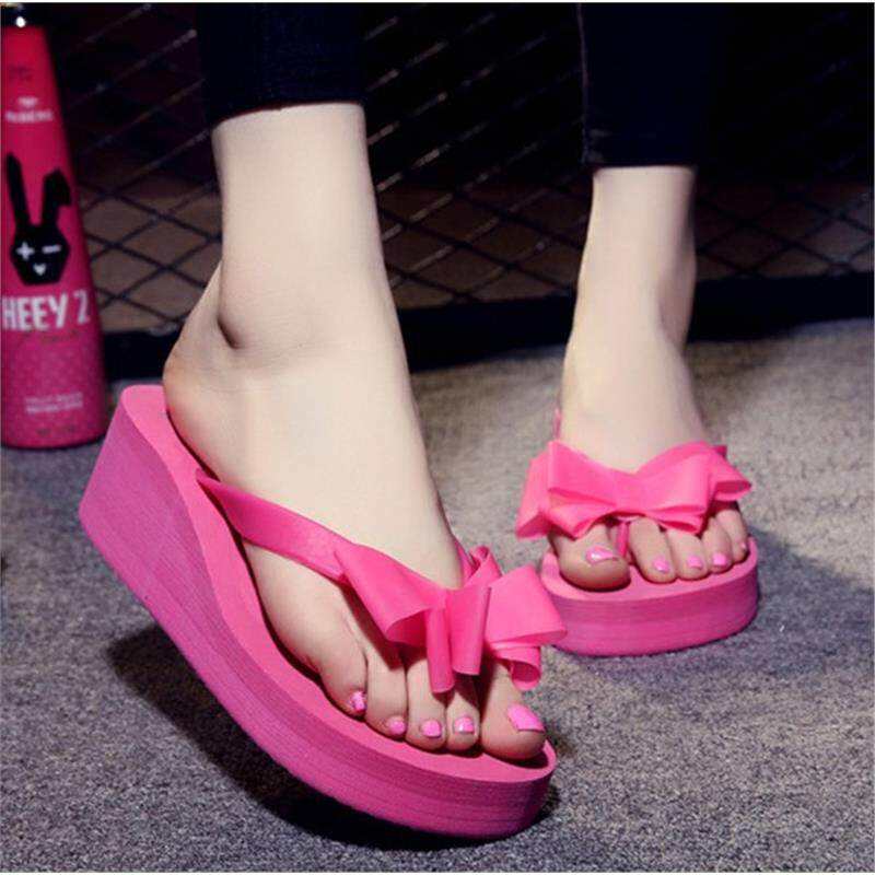 Bow Flip-Flops Женский летний клин клип против скольжения сандалии w