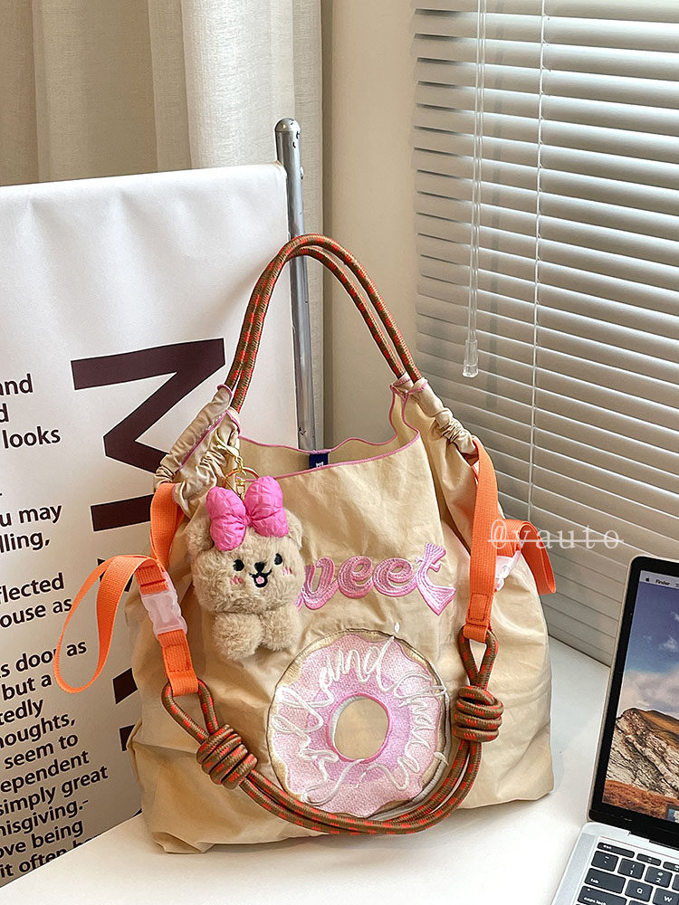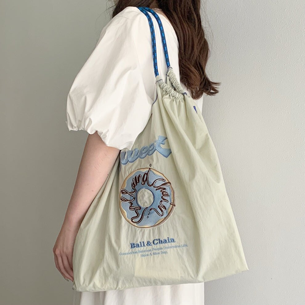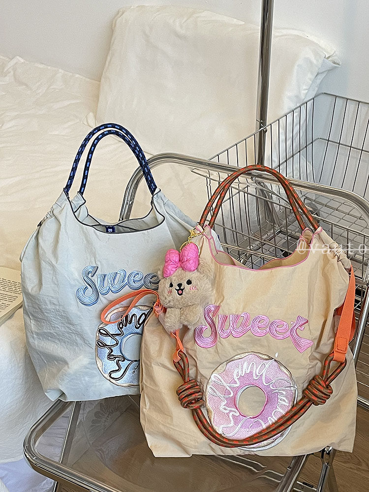 Японский пончик, вместительный и большой шоппер, нейлоновая экологичная сумка на одно плечо, с вышивкой