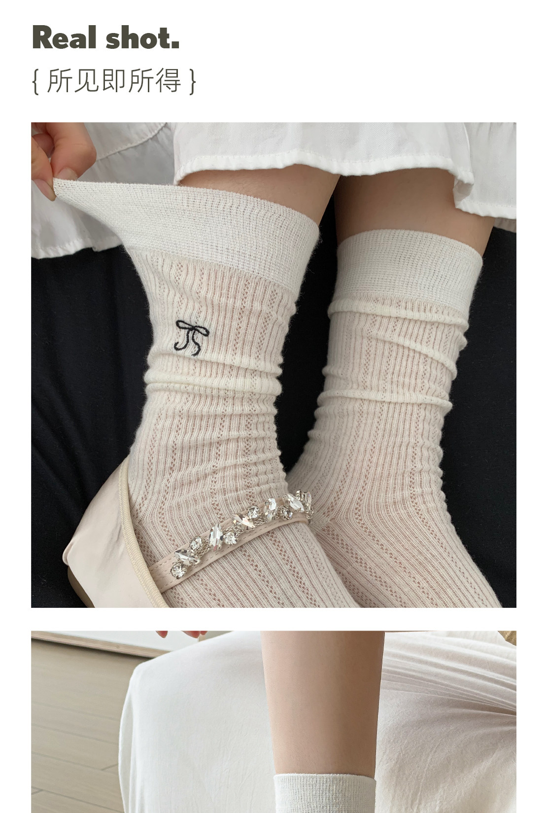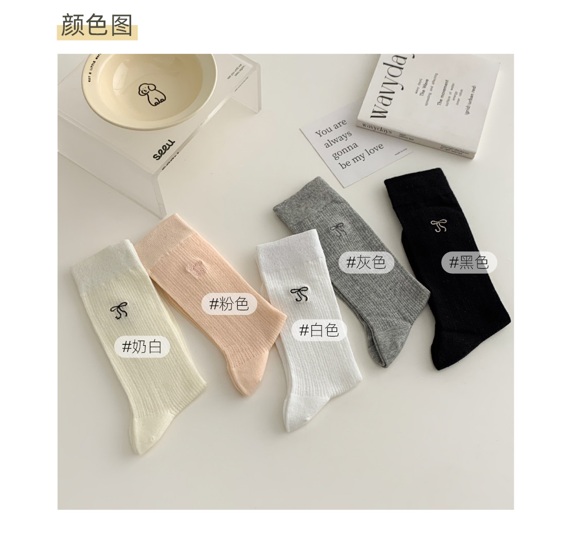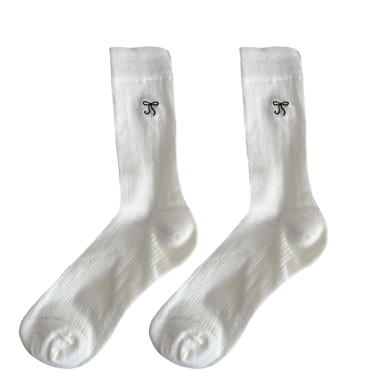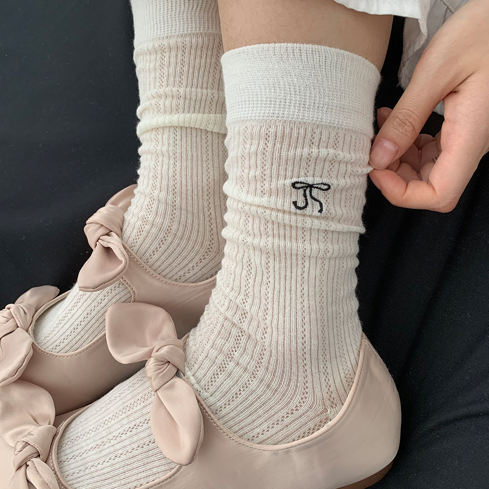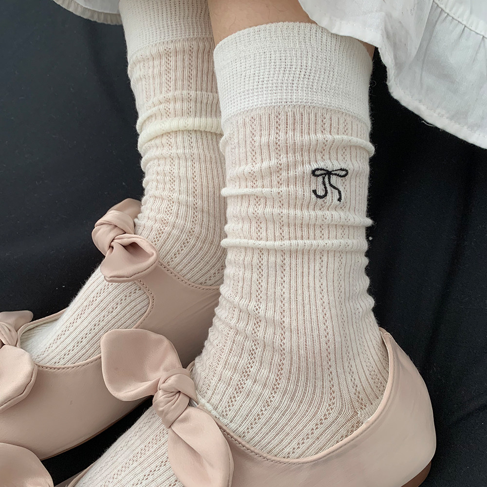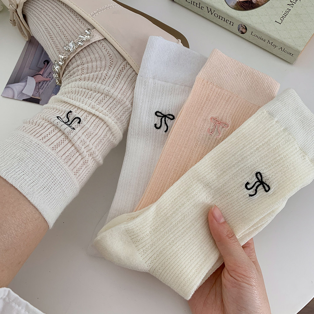 Носки с бантиком, летние тонкие хлопковые японские белые гольфы, средней длины