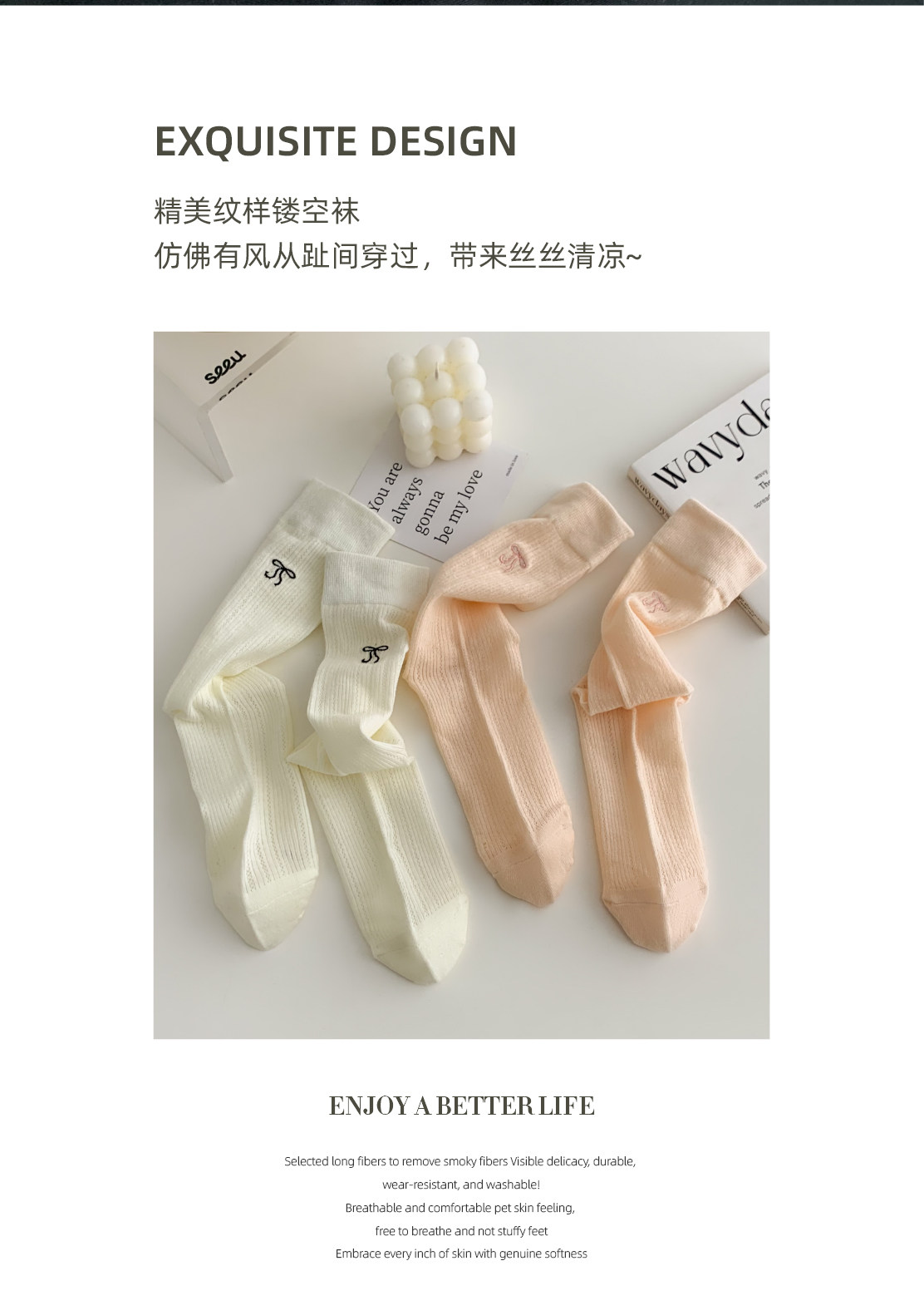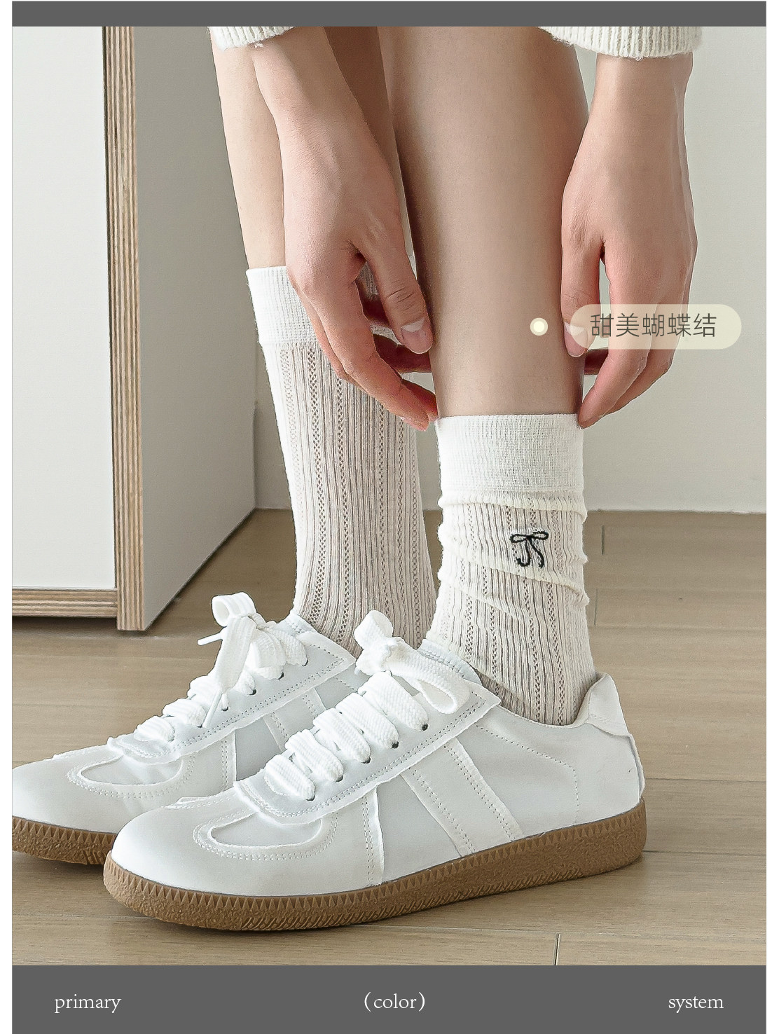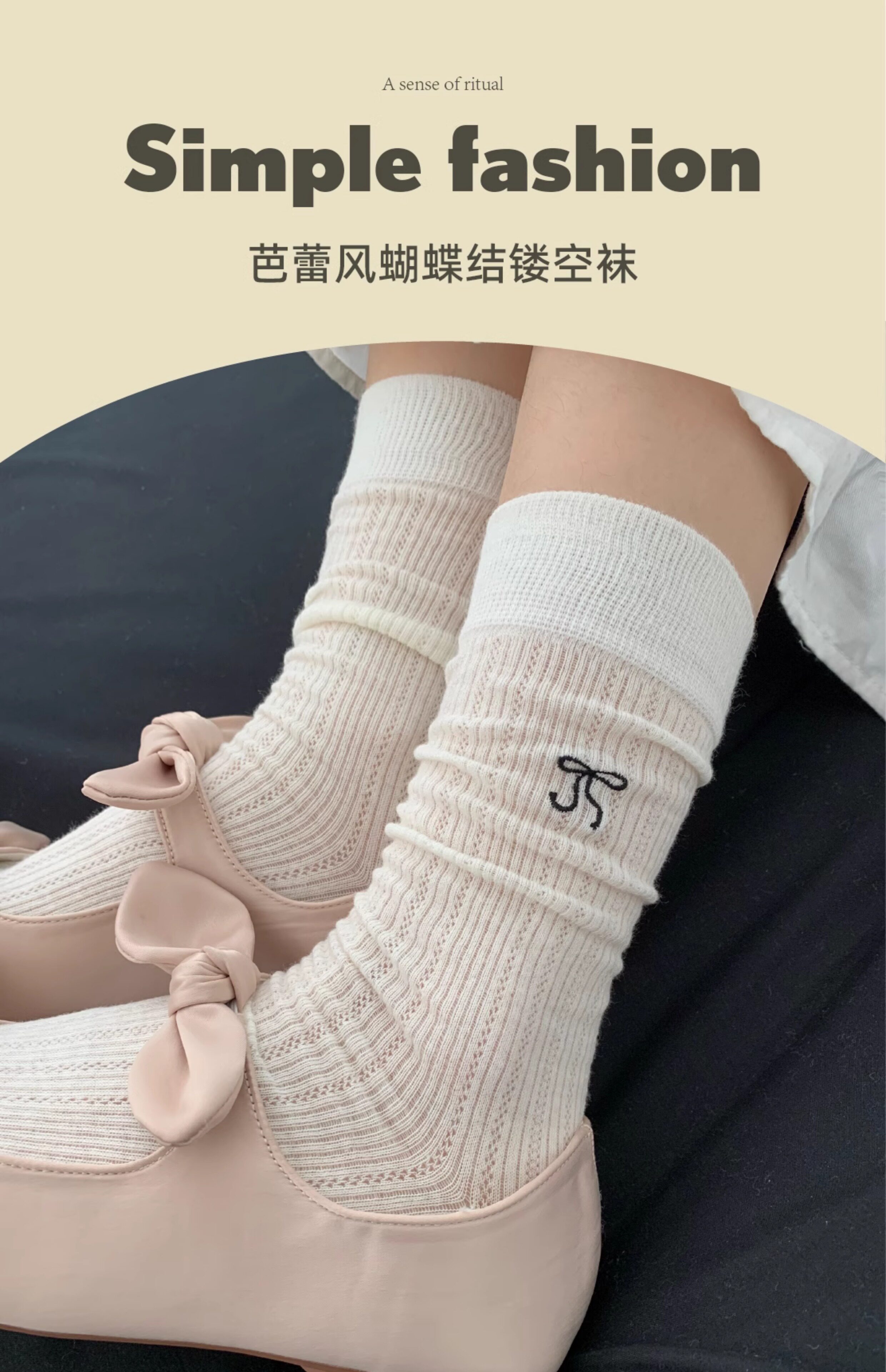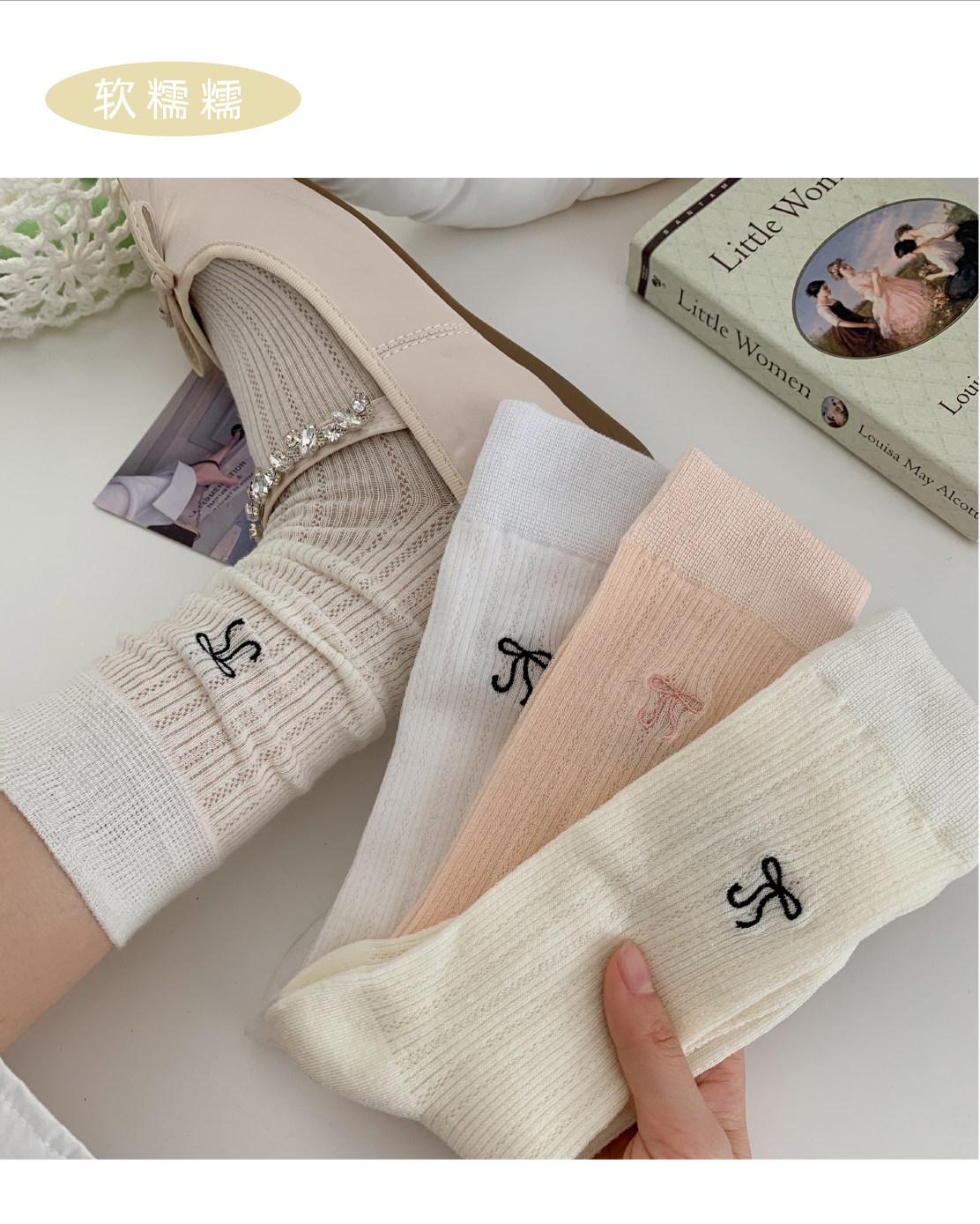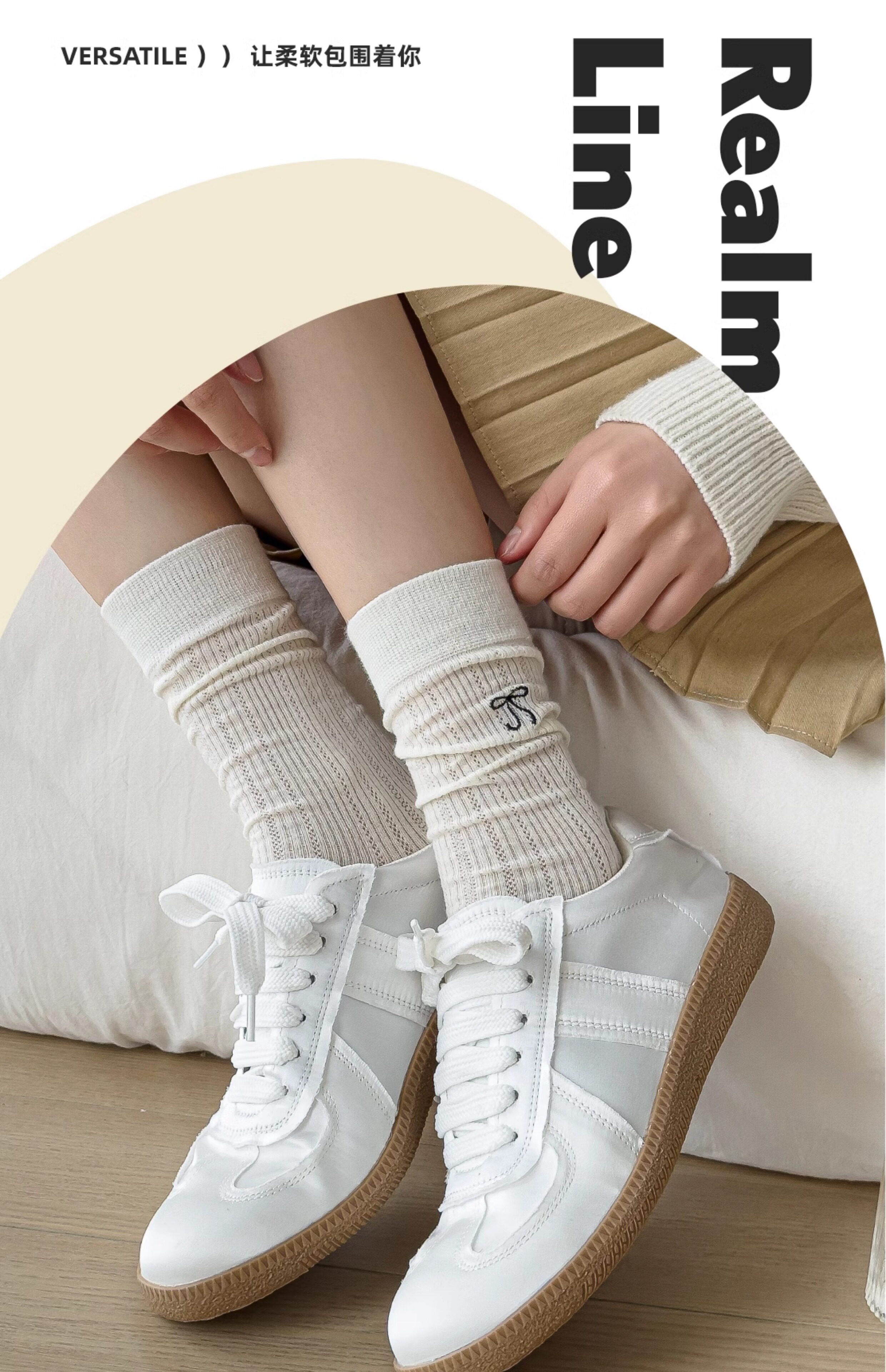 Носки с бантиком, летние тонкие хлопковые японские белые гольфы, средней длины