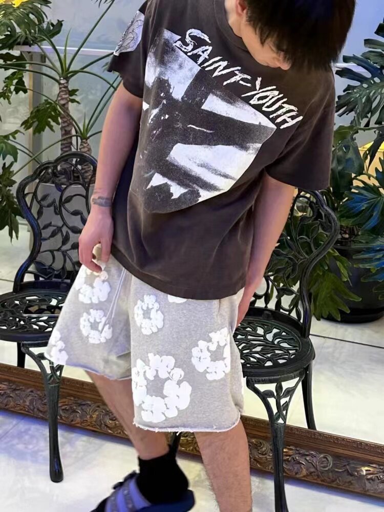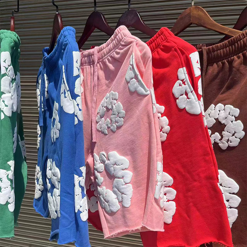 Джинсовые слезы Трек Kun -cotton Foam American Style Five -Mynth Summer Casual Shorts Мужчины и женщины Tide Cards