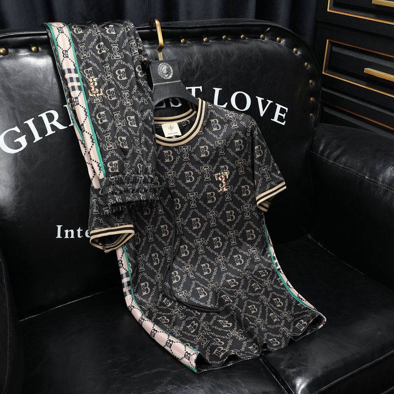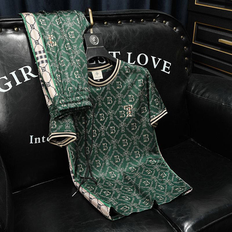 Штаны, мужской летний спортивный костюм, комплект, европейский стиль, короткий рукав