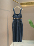 Подтяжки, корсет, джинсовое платье, в корейском стиле, подходят для подростков, длина миди