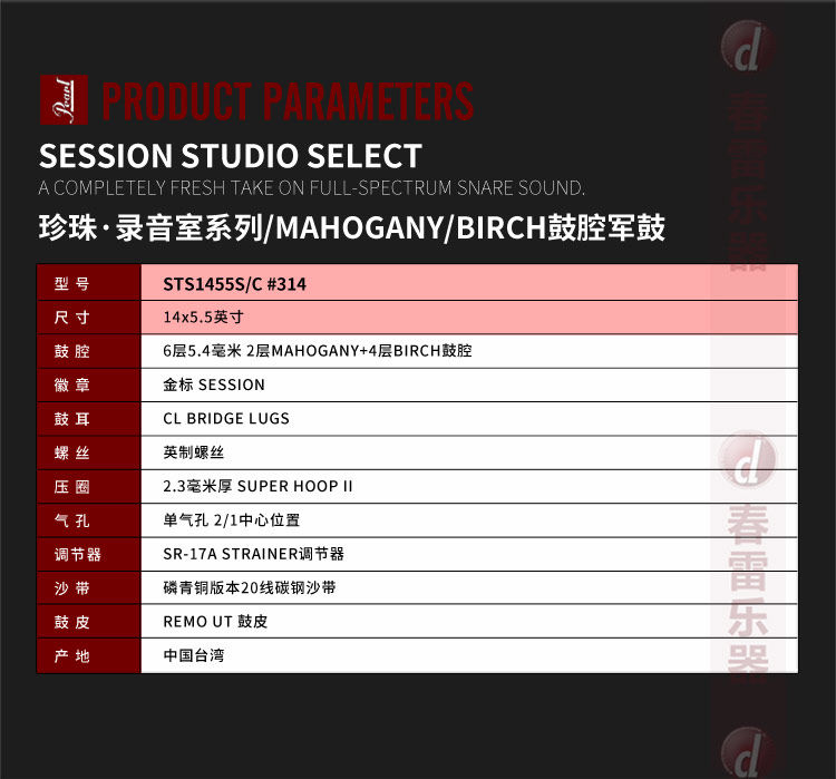 Pearl Малый барабан Pearl Session Studio Select 14x5,5 дюймов STS1455S/C#314