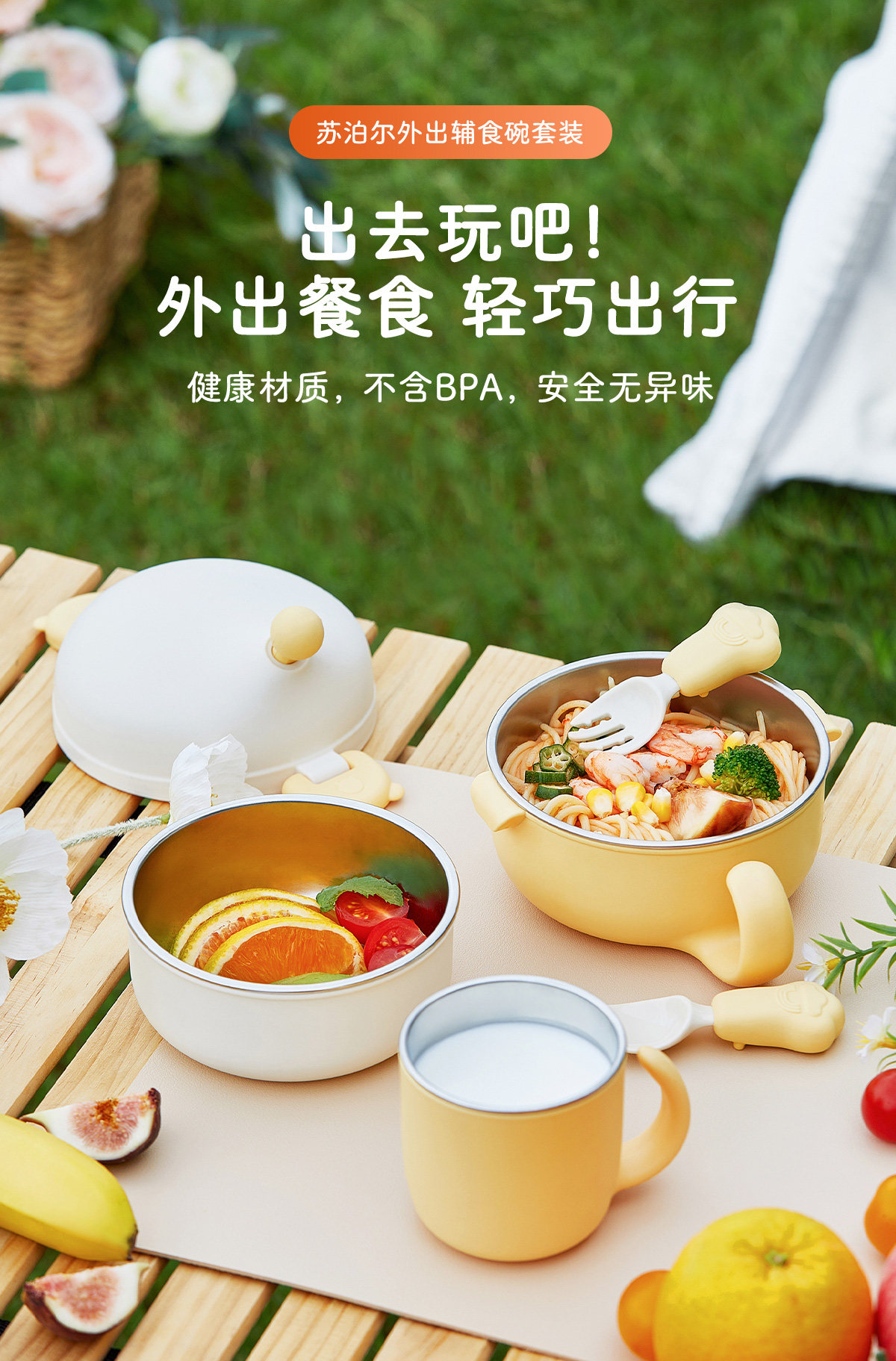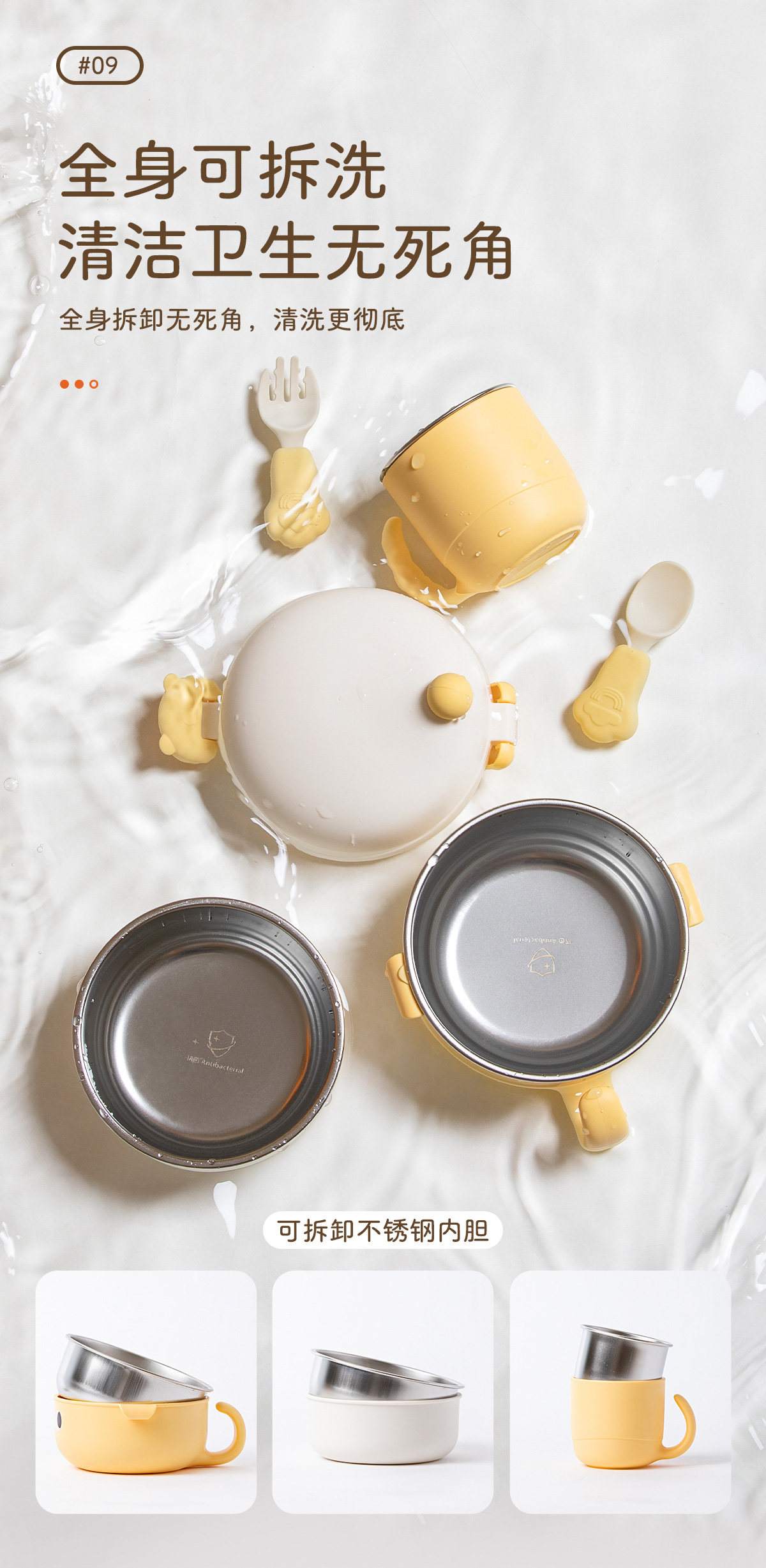 Детский портативный антибактериальный съемный ланч-бокс для выхода на улицу из нержавеющей стали, посуда, набор
