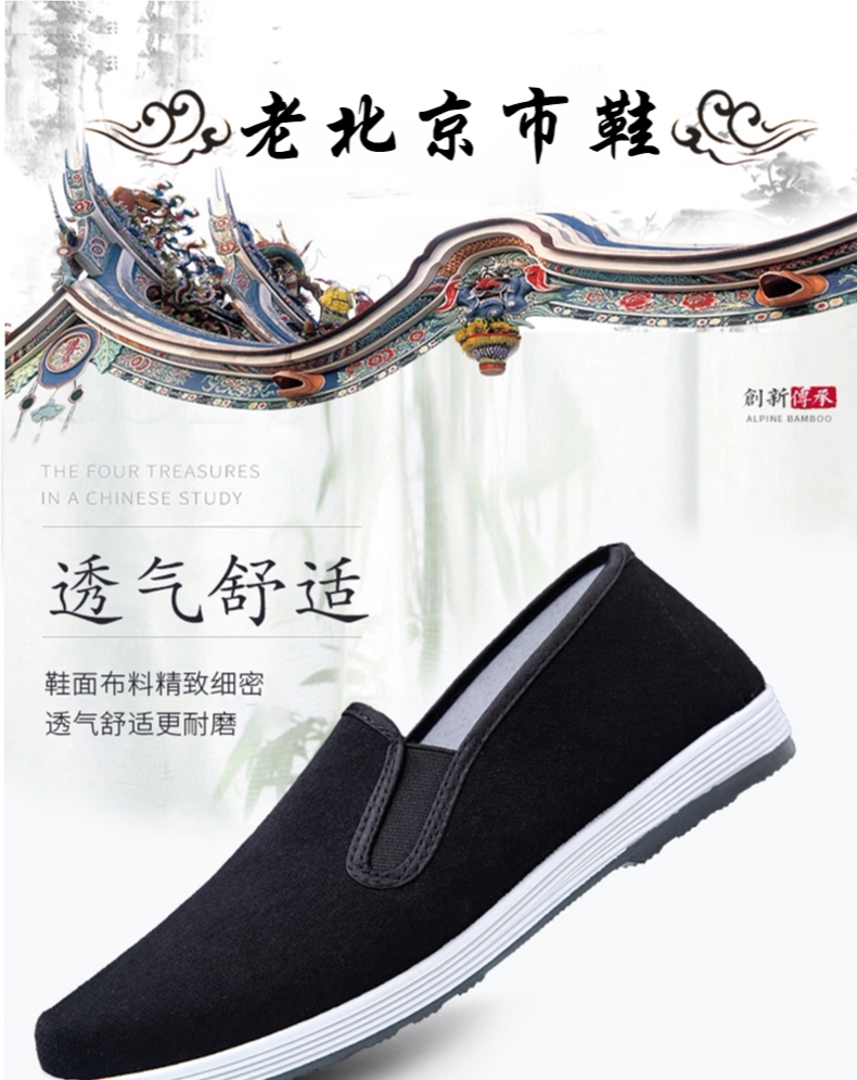 Старая пекинская ткань туфли мужская весна и летняя сезонная туфли, тысяча слоев нижнего дна, утолщенная шина дно работают черная ткань