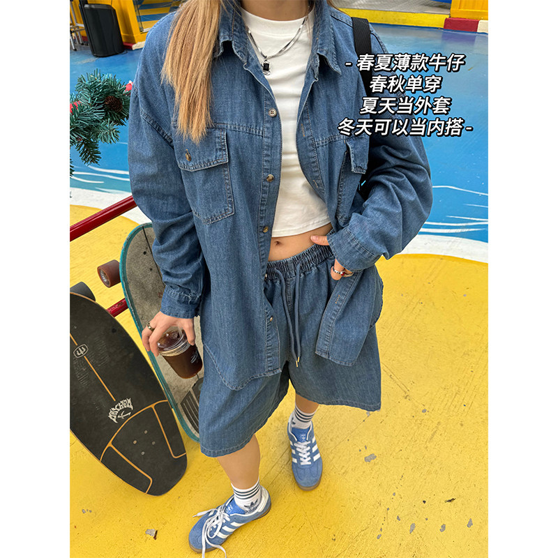 Ретро летняя тонкая джинсовая рубашка подходит для мужчин и женщин, в американском стиле, для влюбленных, оверсайз