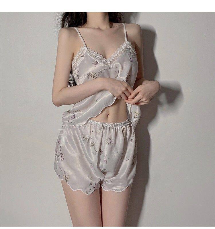 Шелковый кружевной комплект, милые цветочные композиции, пижама, эффект подтяжки
