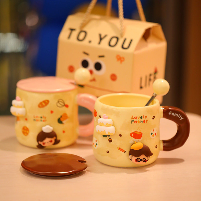 Творческий мультипликационный день рождения керамическая чашка с крышкой ложки.