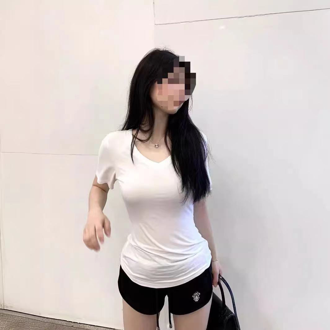 Летняя приталенная короткая футболка, V-образный вырез, в американском стиле, высокая талия