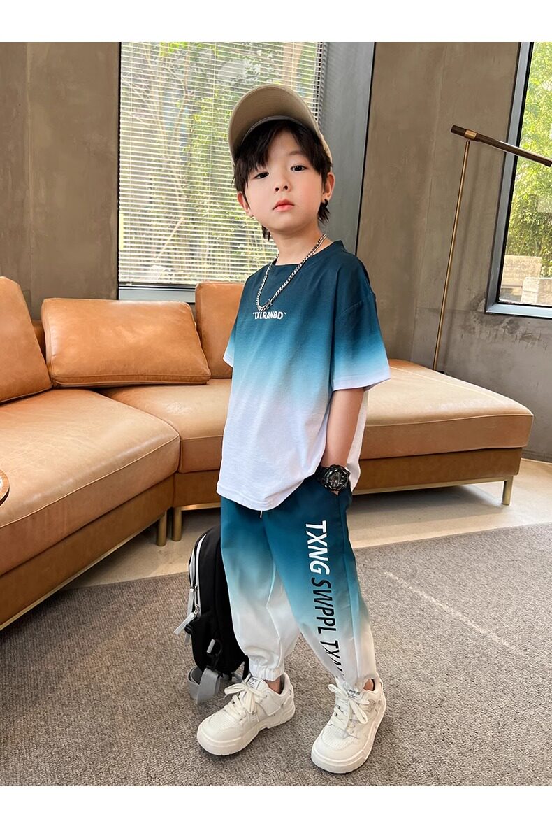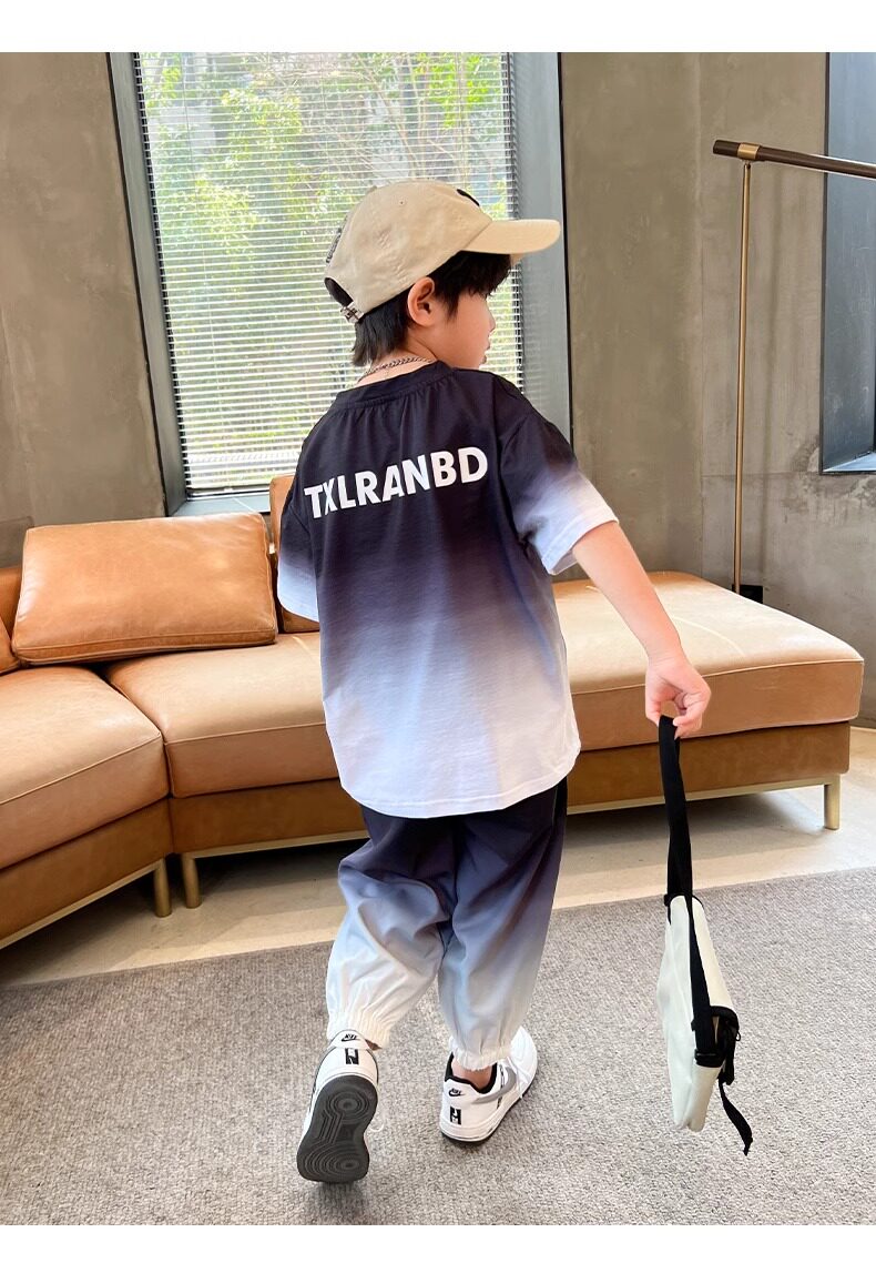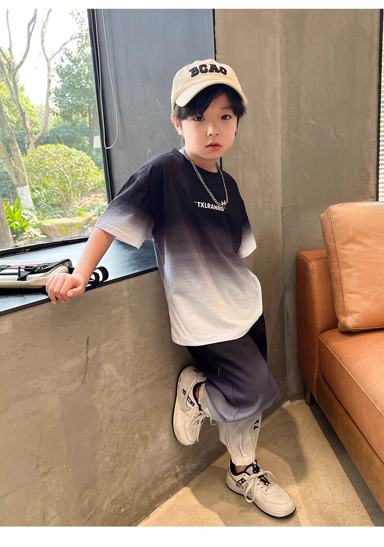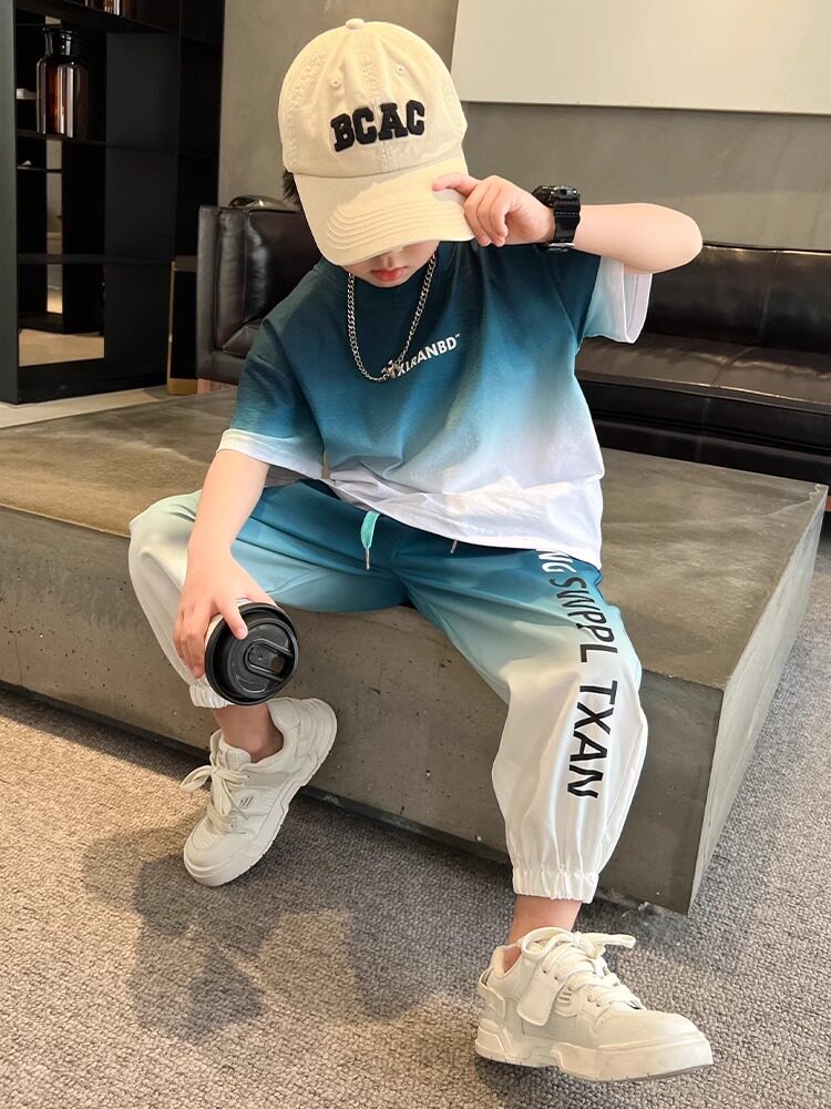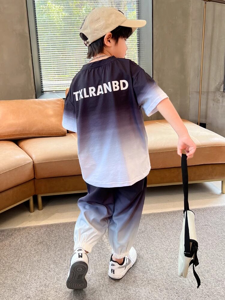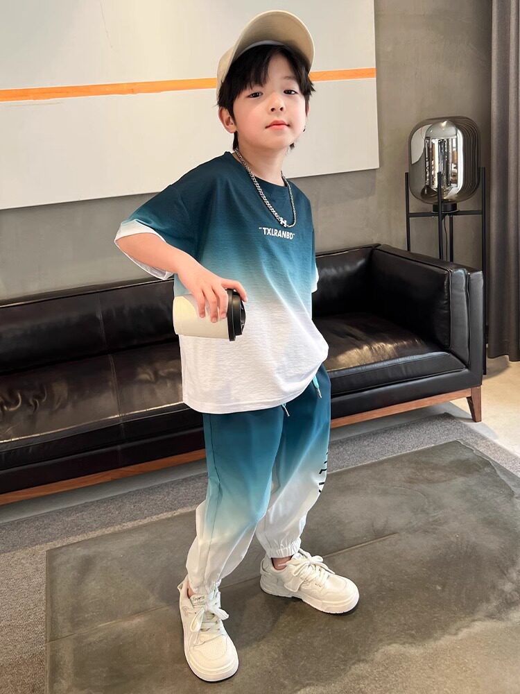 Летняя одежда, летний комплект, детская спортивная тонкая футболка для мальчиков, короткий рукав, в западном стиле