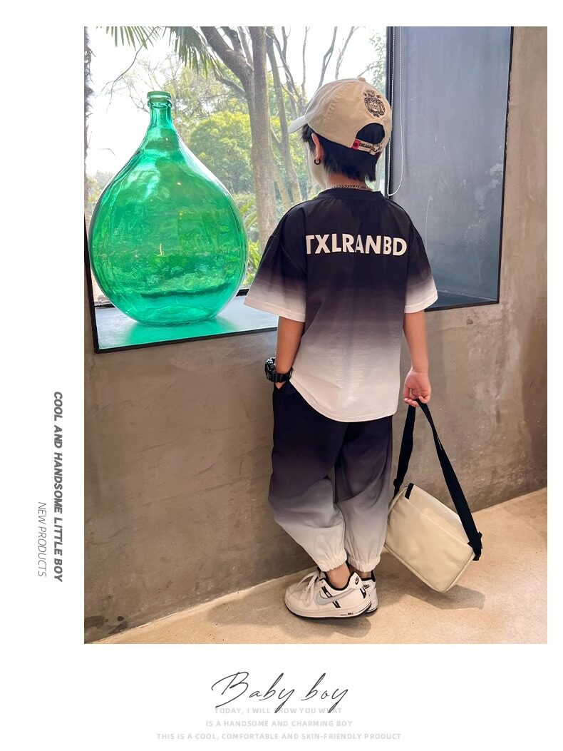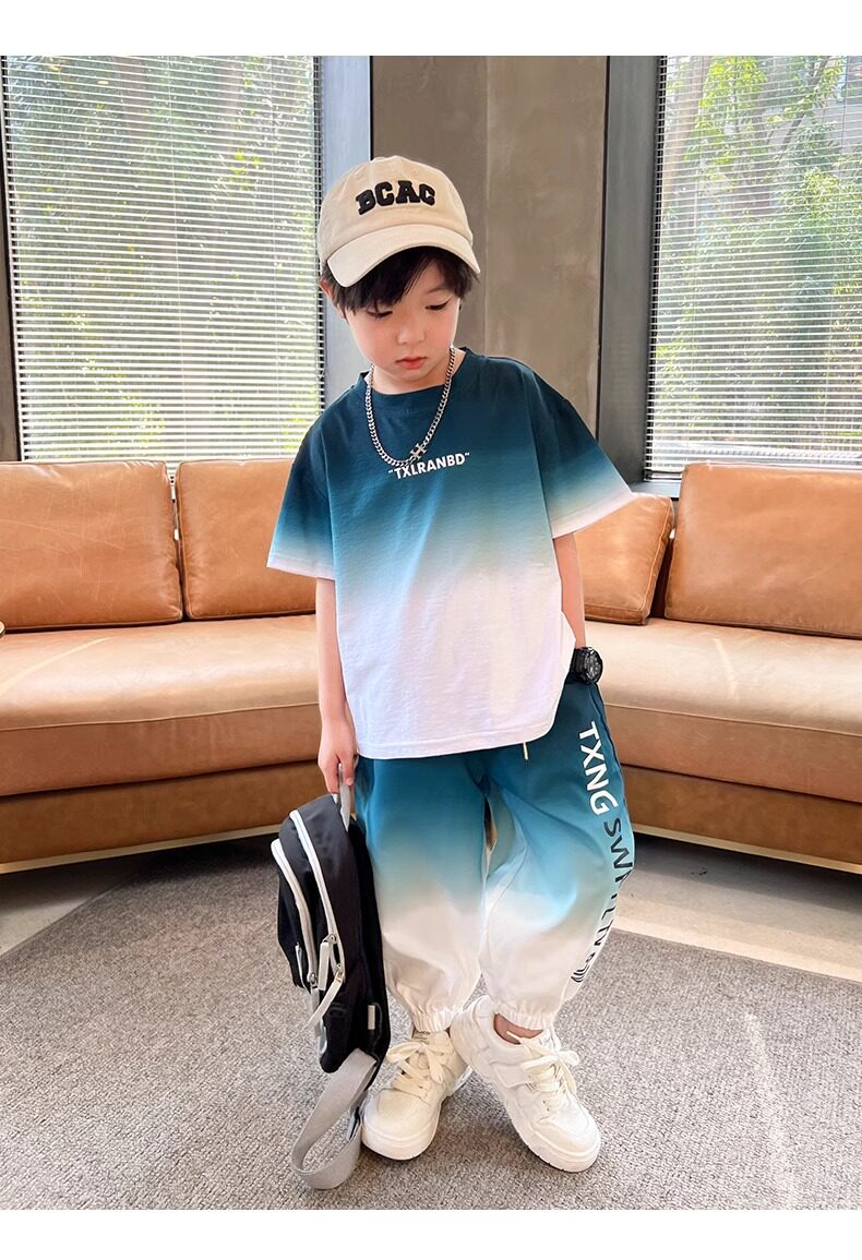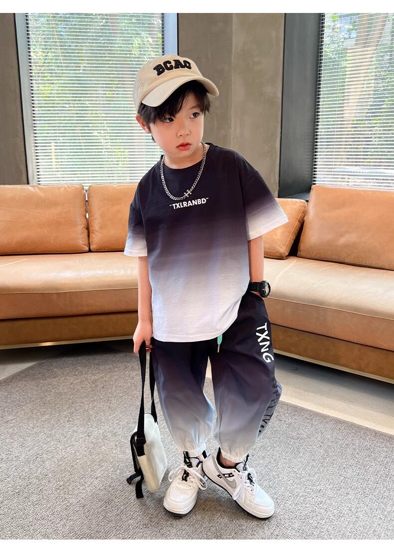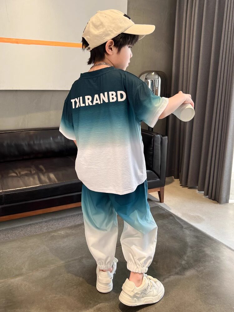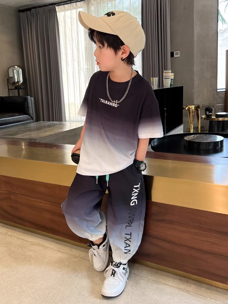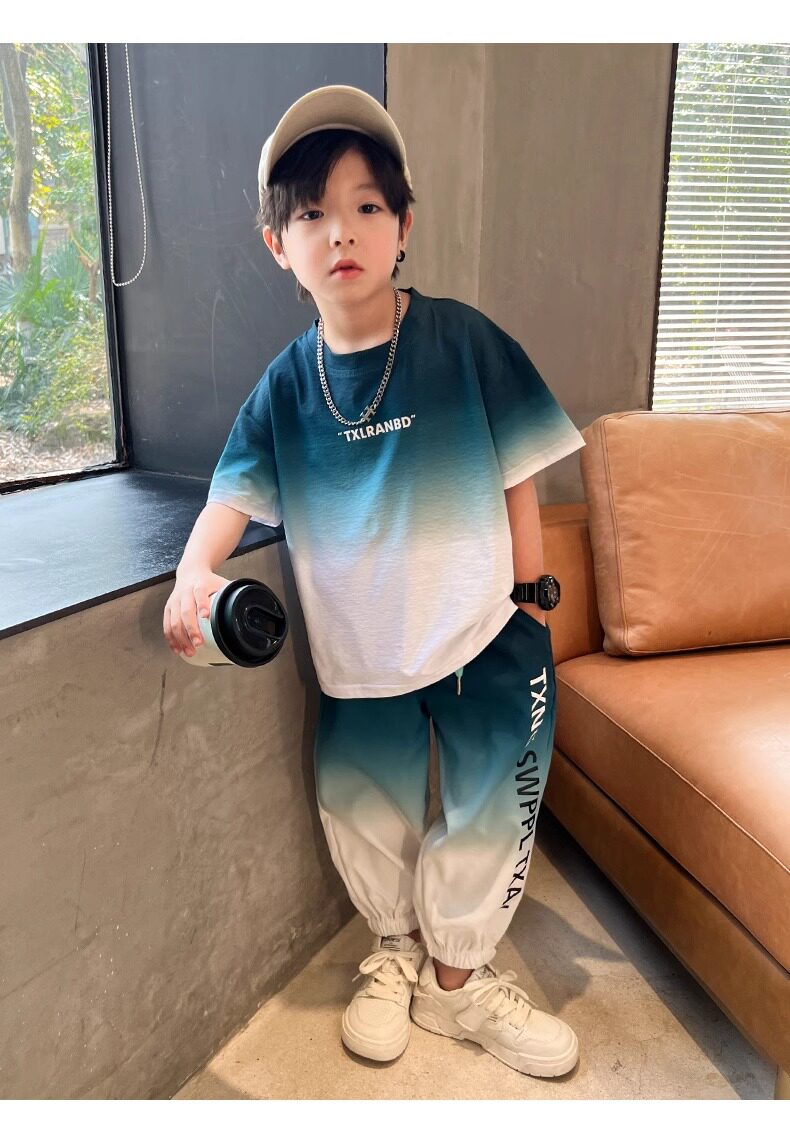 Летняя одежда, летний комплект, детская спортивная тонкая футболка для мальчиков, короткий рукав, в западном стиле