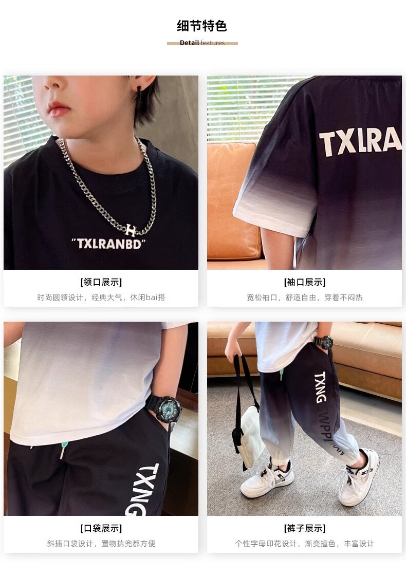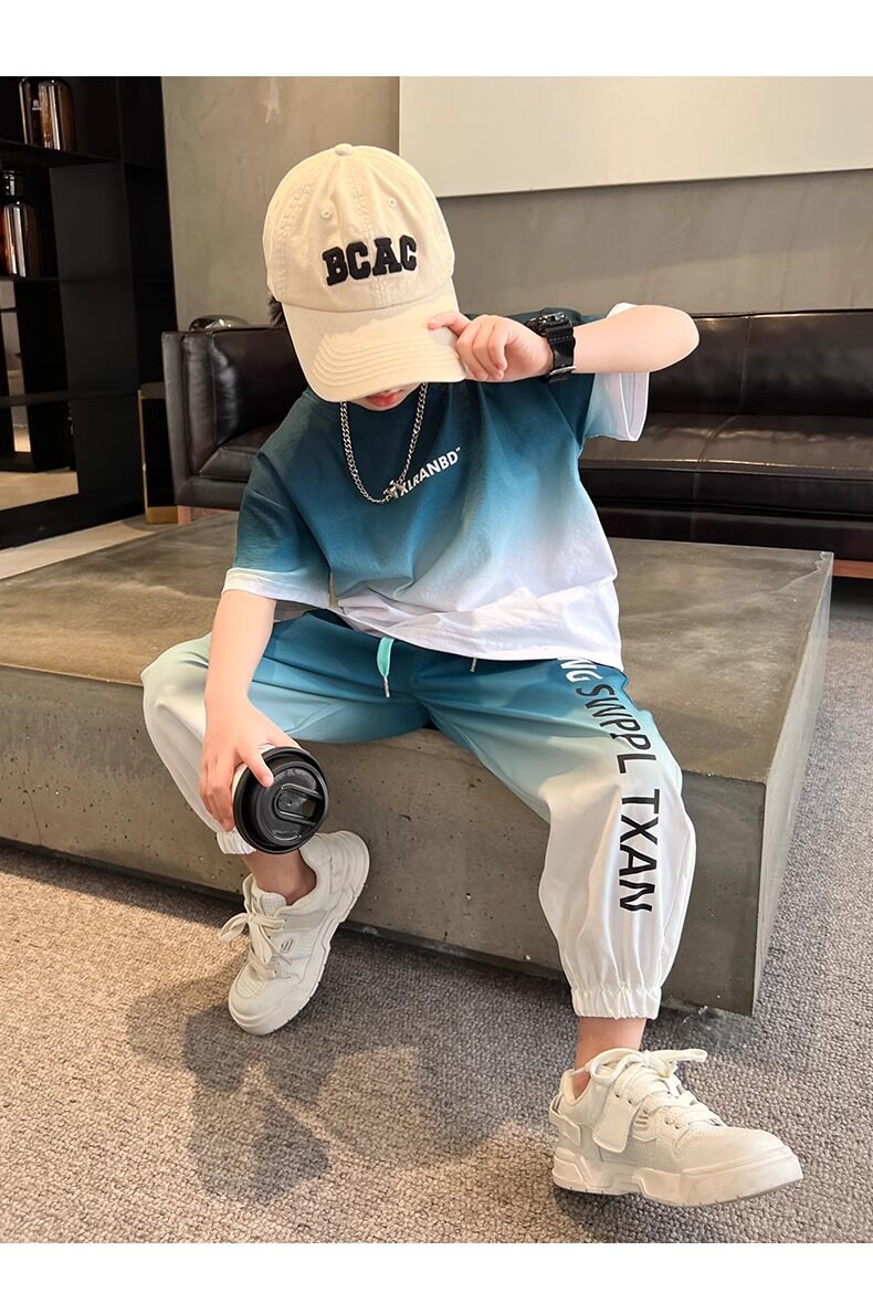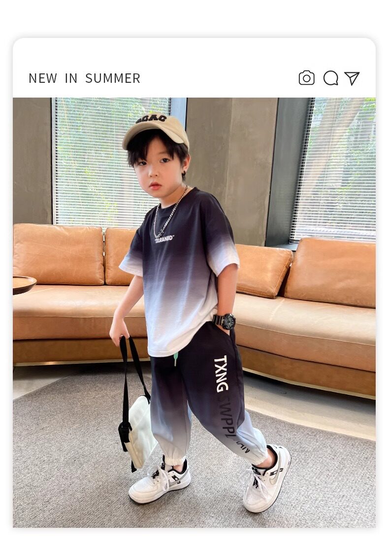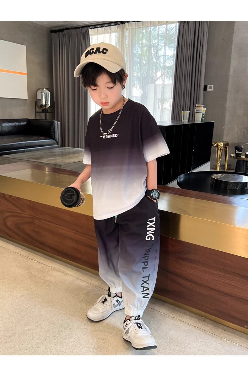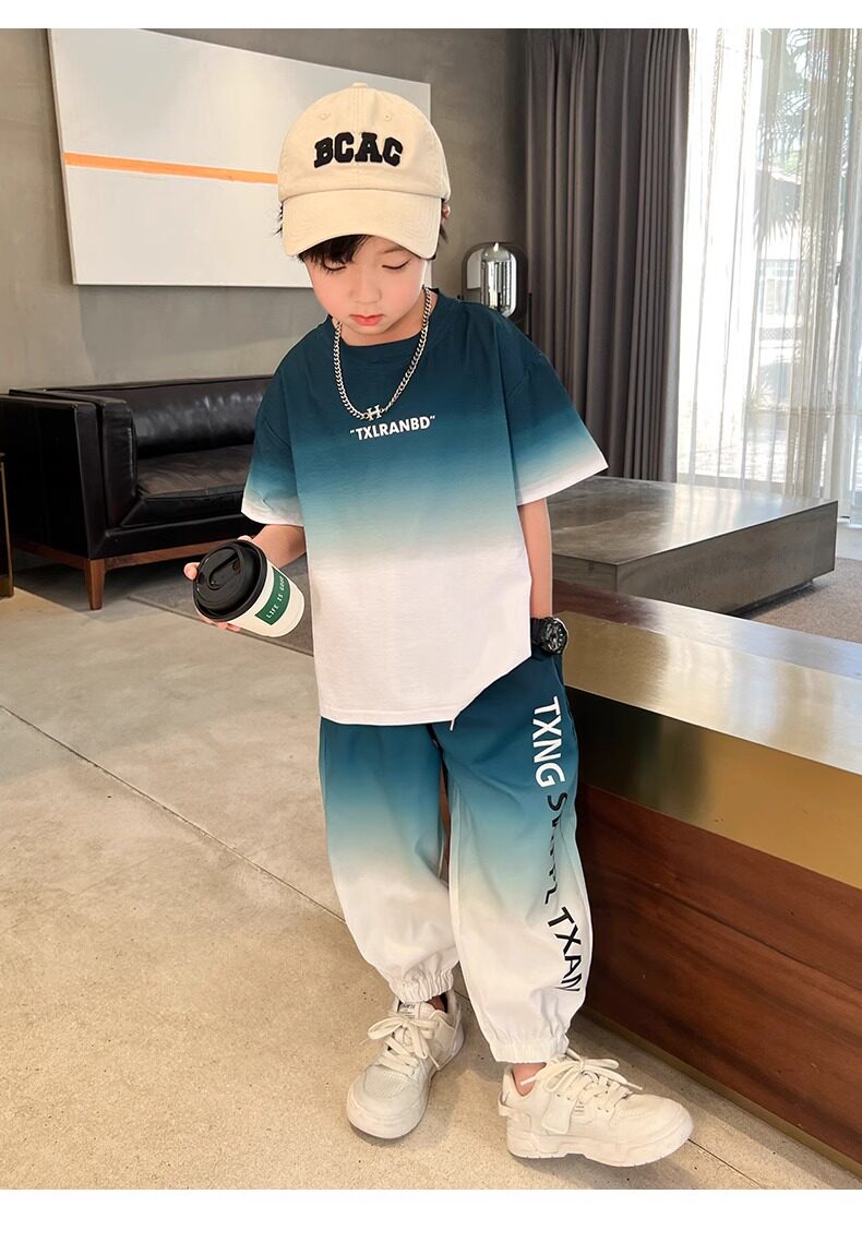 Летняя одежда, летний комплект, детская спортивная тонкая футболка для мальчиков, короткий рукав, в западном стиле