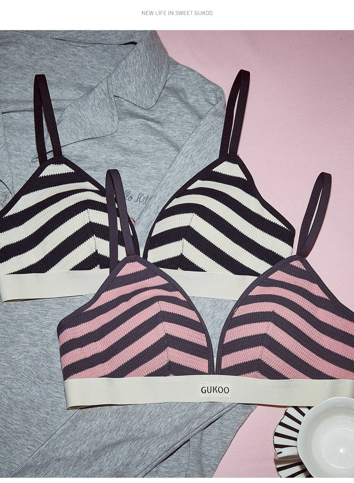 Гуку/фруктовый ракушка нижнее белье женское весеннее и летние полосатые бюстгальтеры Новая мисс Фафер.