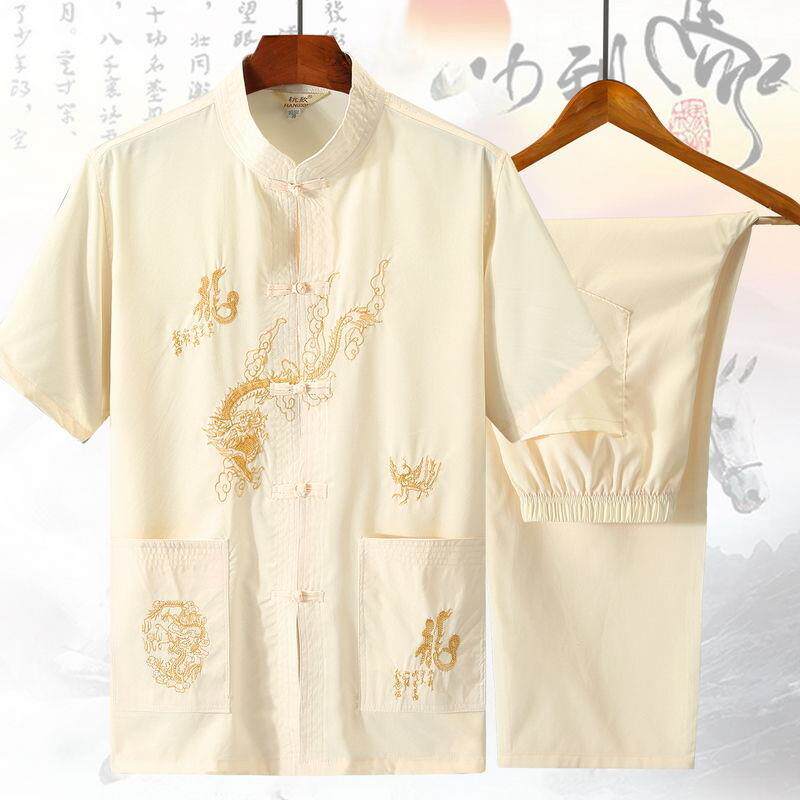 Летний комплект для пожилых людей, рубашка, ханьфу, для среднего возраста, короткий рукав, с вышивкой, большой размер