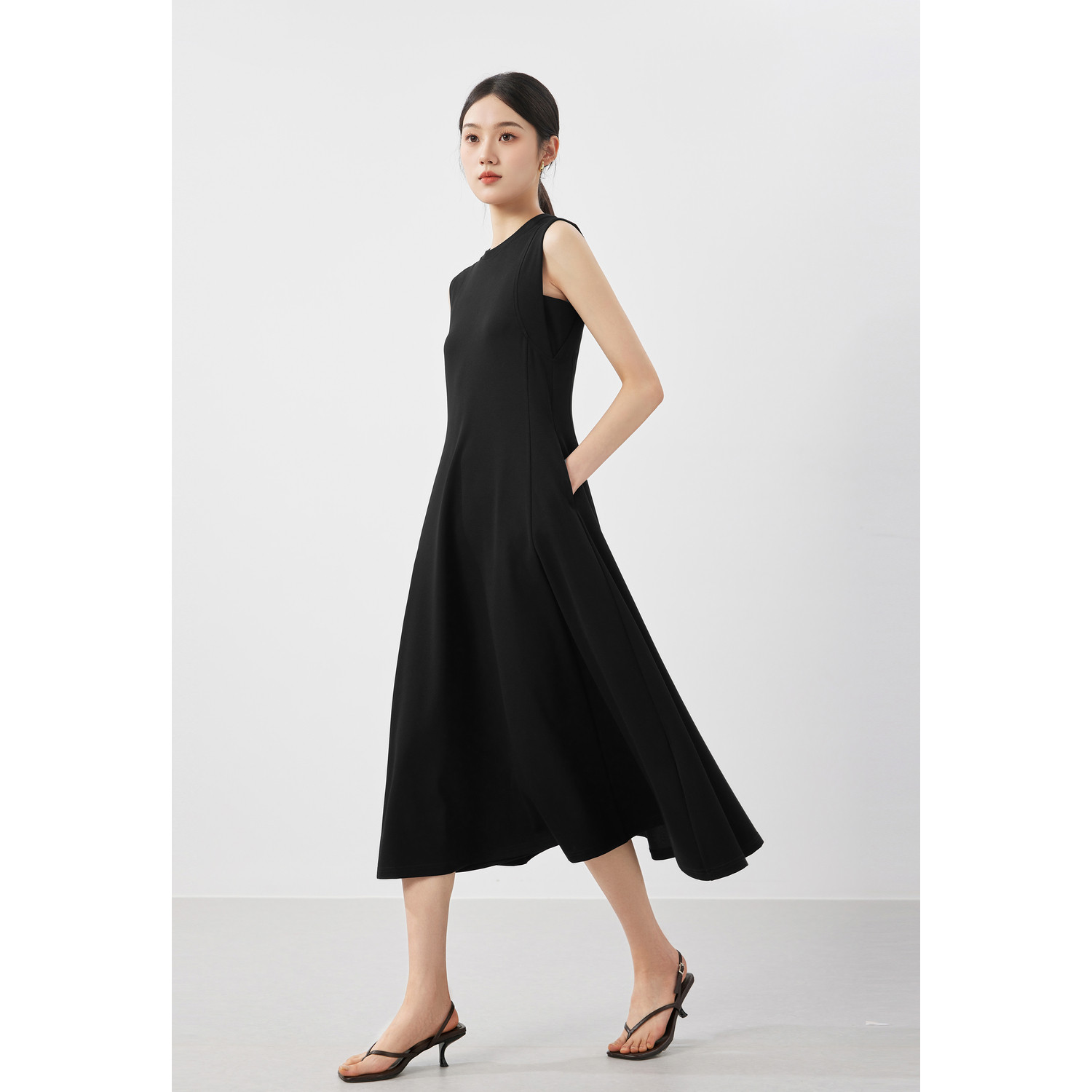 Качественное классическое длинное платье с рукавами без рукавов, А-силуэт