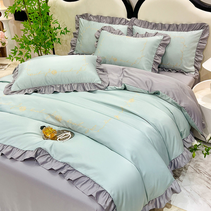 Брендовый корейский шелковый комплект, шелковистый пододеяльник, летняя простыня, 4 предмета, 3 предмета