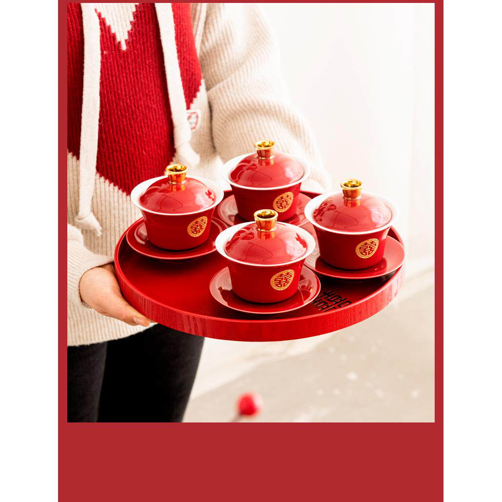 Чайная чашка, красный комплект, керамическая крышка для стакана, чайный сервиз, китайский стиль