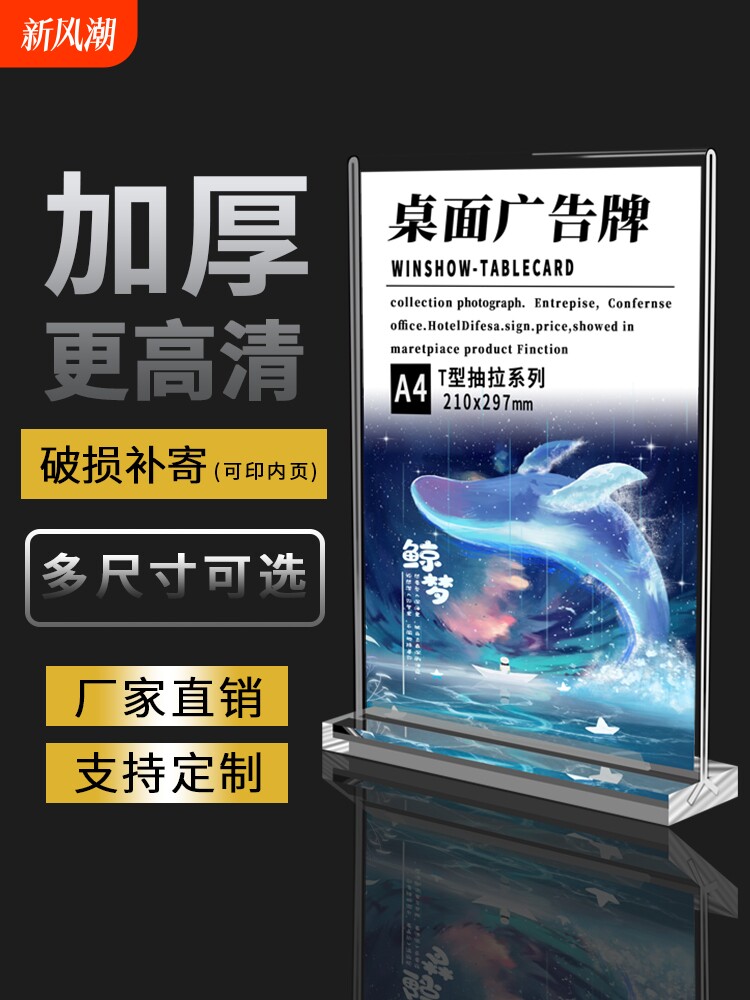 Акриловая настольная карта дисплей карта карта A4 Настольные меню Прайс Список Список Стол Стол Столовый молочный чай ресторан винный бренд Прайс цена Двойная прозрачная Т-образная Т-образная Т-образная лента A5 Billboard A6 Знак табличного знака