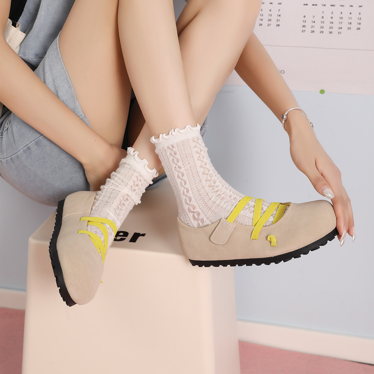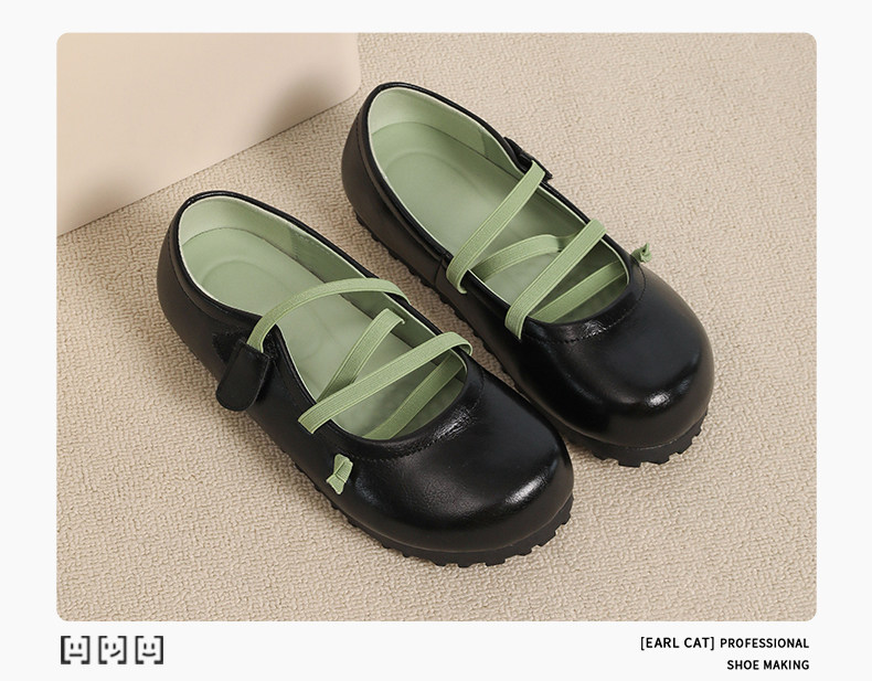 伯爵猫 Женские туфли Мэри Джейн с круглым носком на плоской подошве, весенне-летний сезон 2025, новые универсальные туфли из натуральной кожи, балетки-пуфы