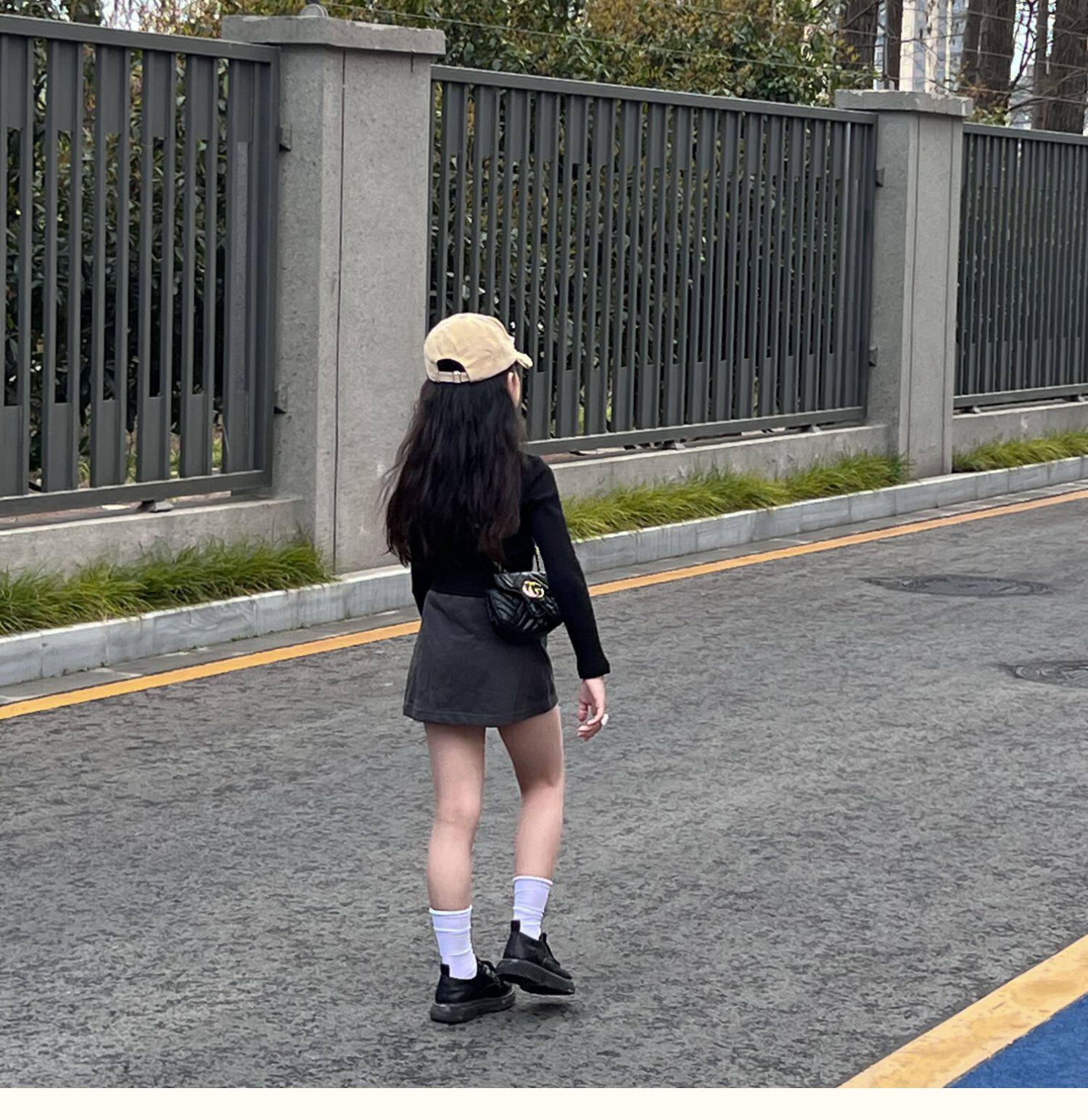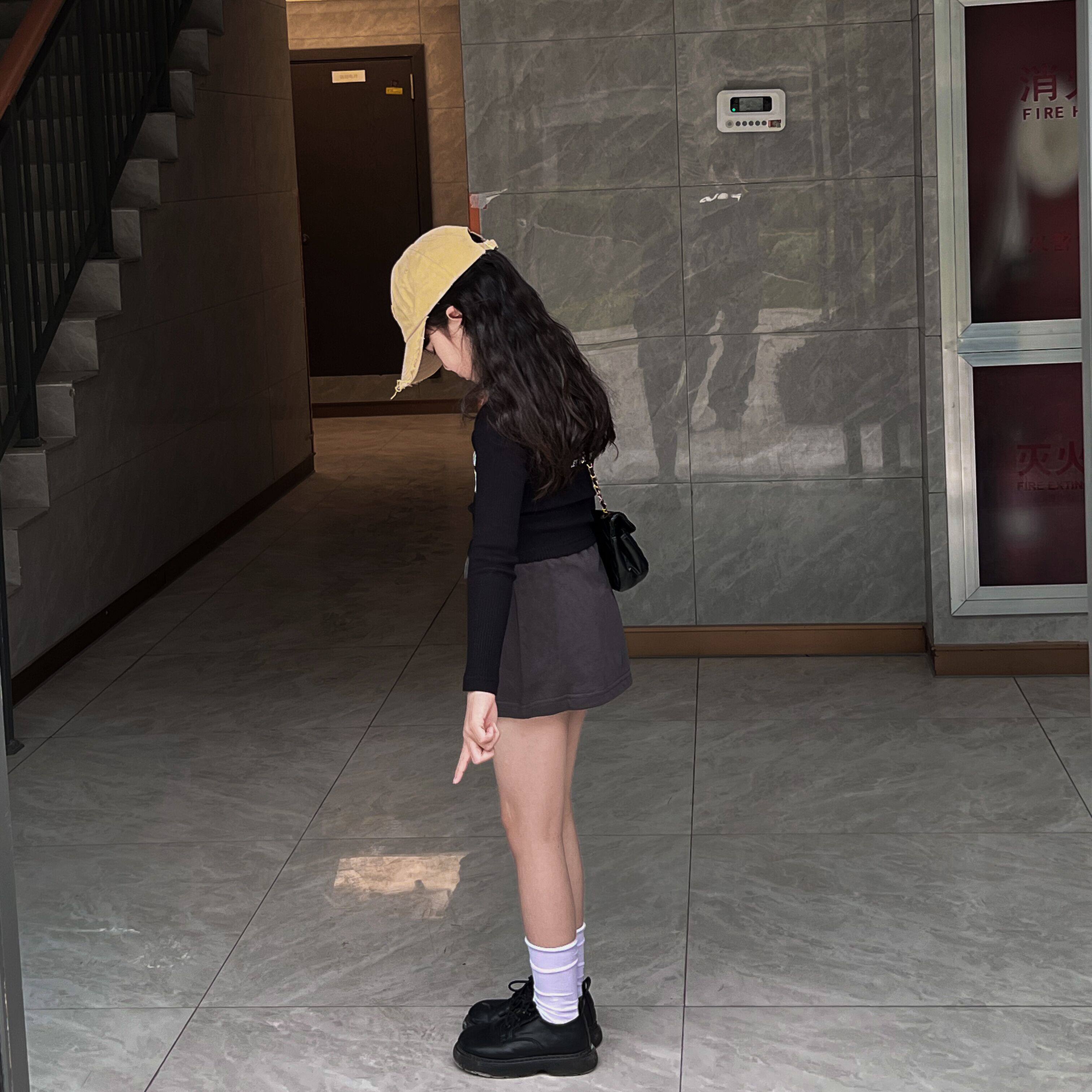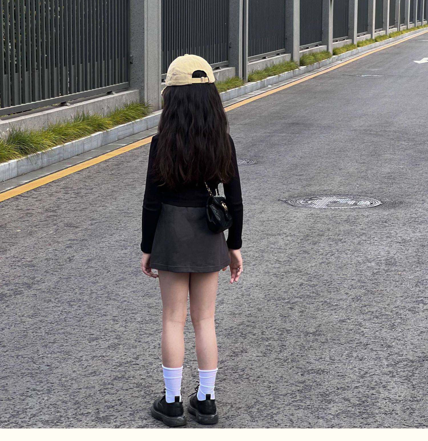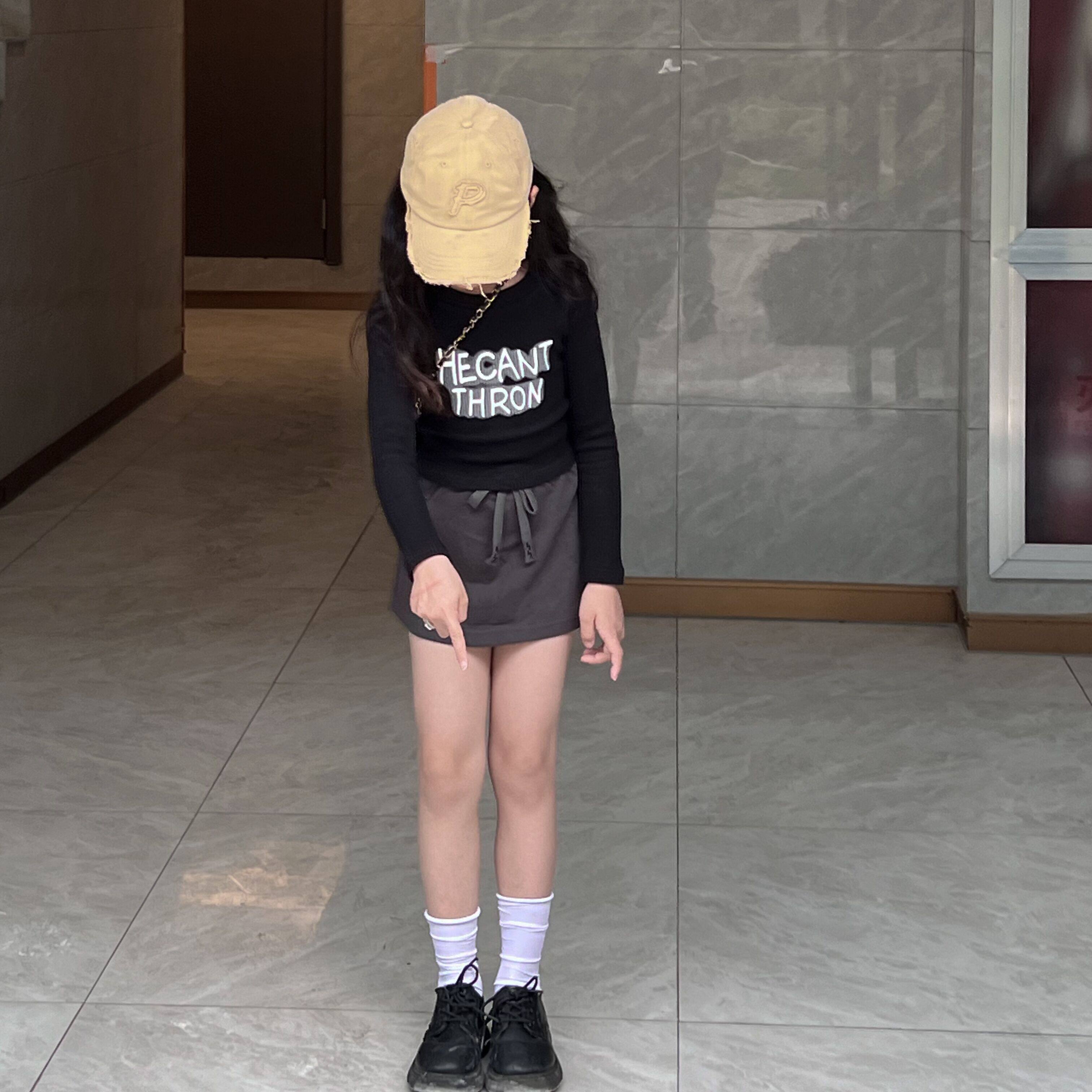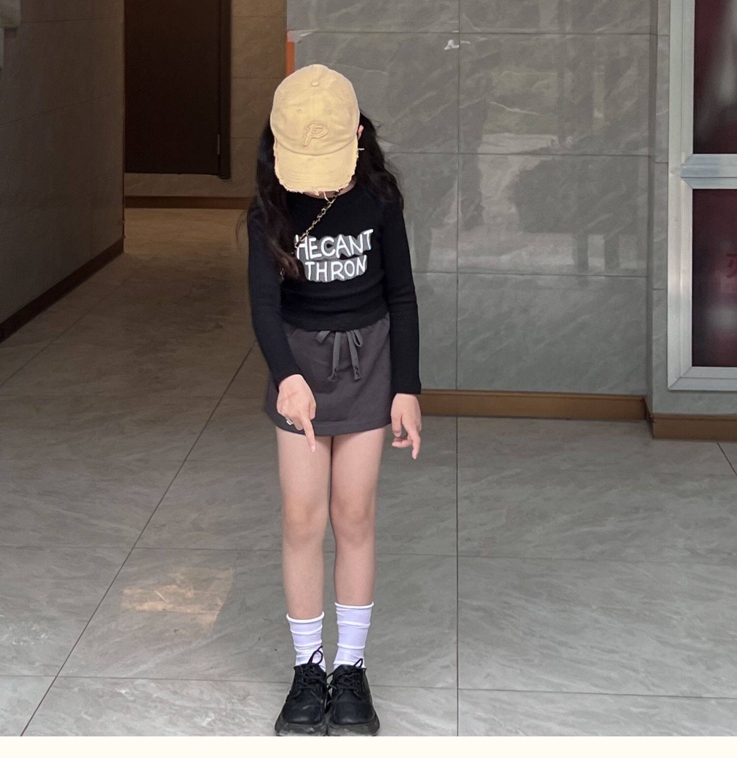 Ji Xiaoke 2024, весенняя футболка для девочек с длинными рукавами, короткими круглым вырезом и полоской, топ с буквенным принтом и юбка, брюки
