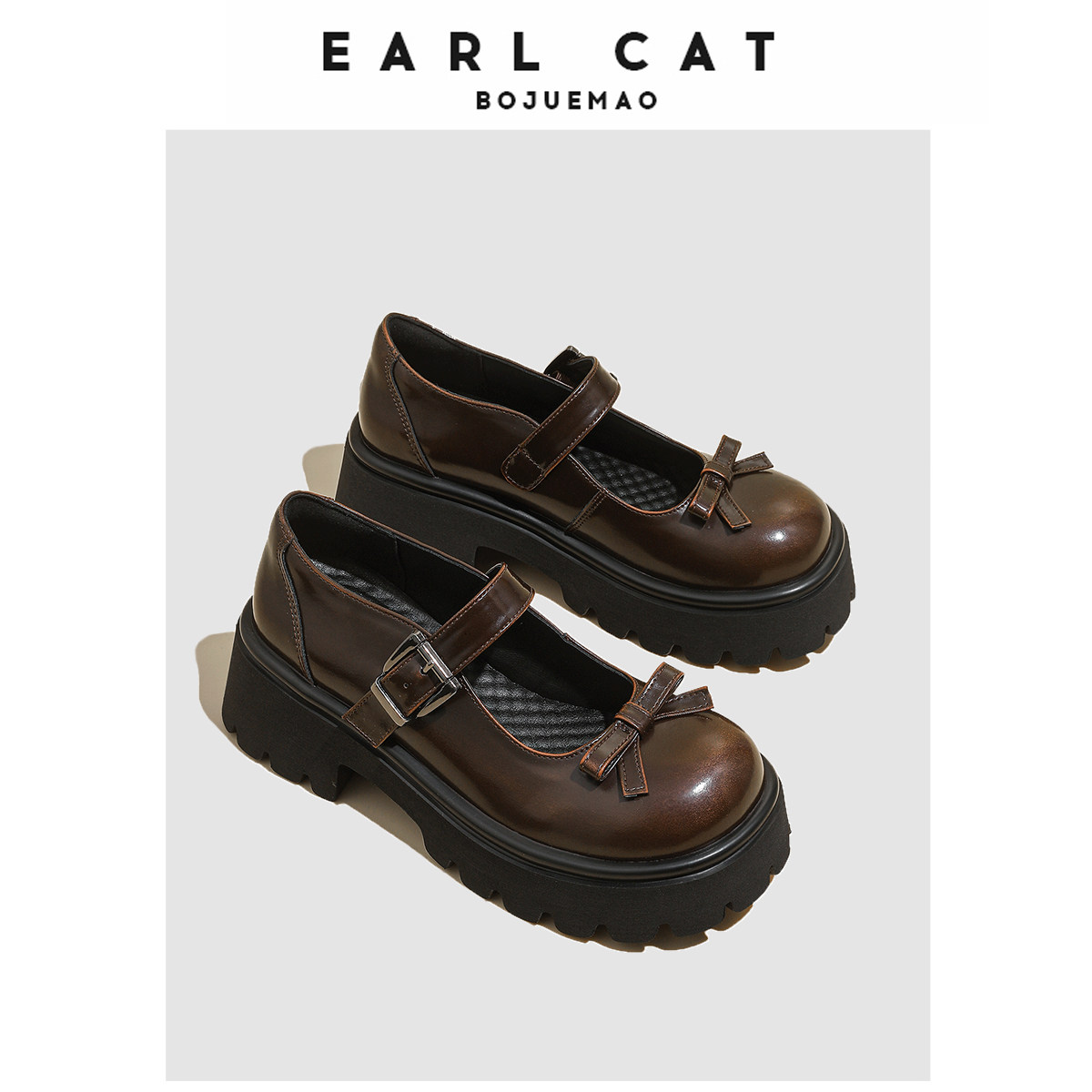 伯爵猫 Летняя черная высокая обувь на платформе для кожаной обуви, из натуральной кожи