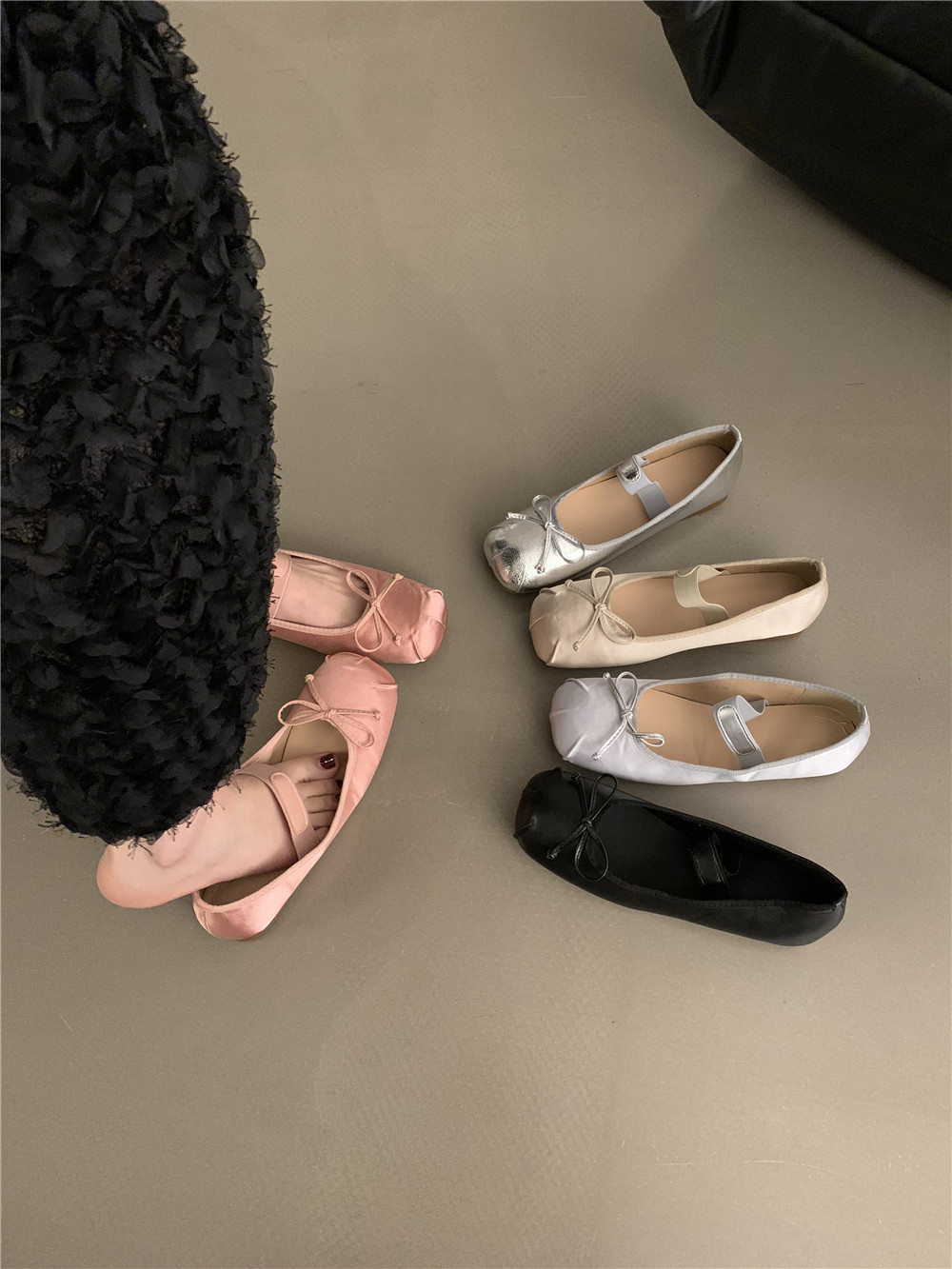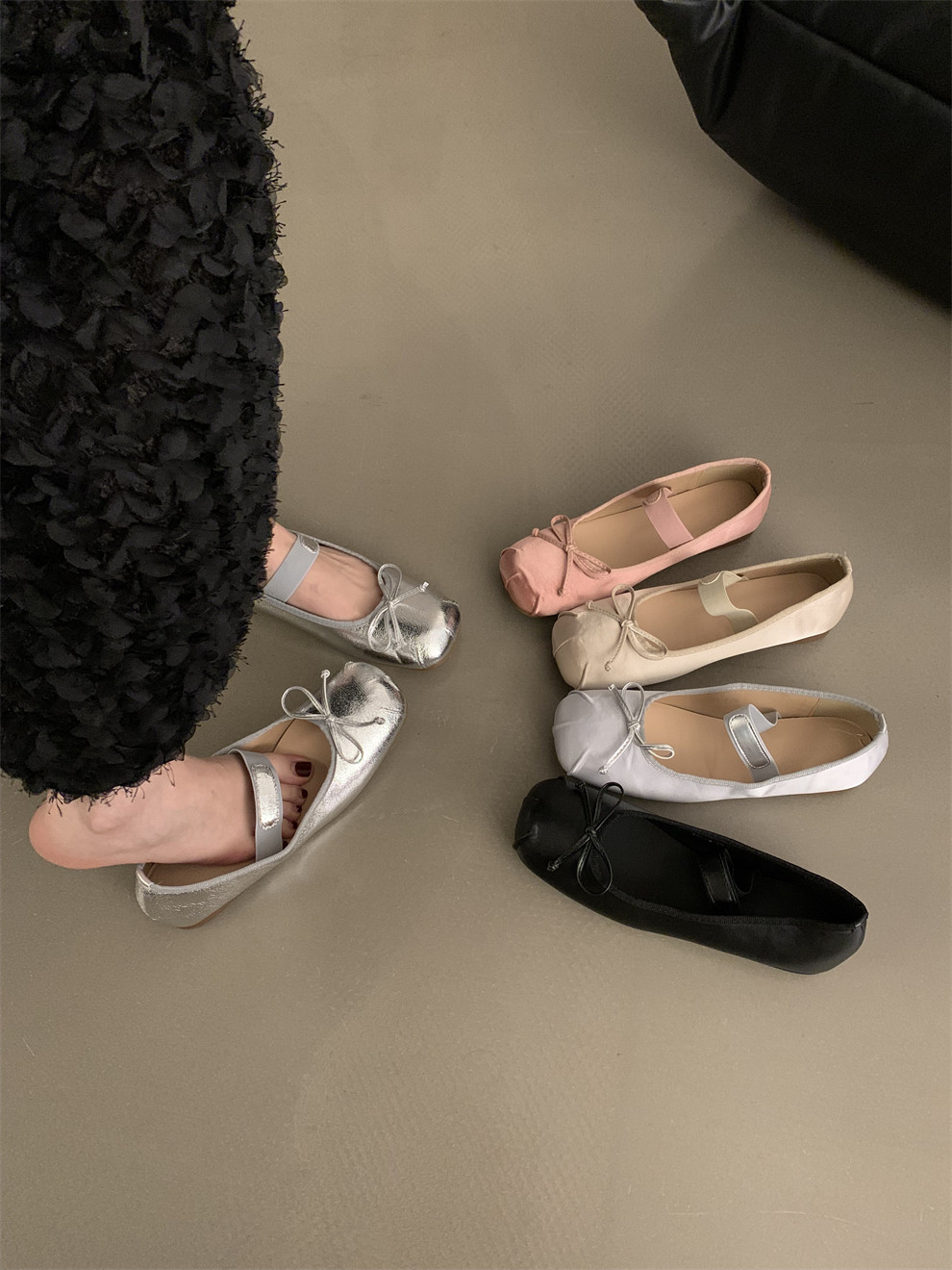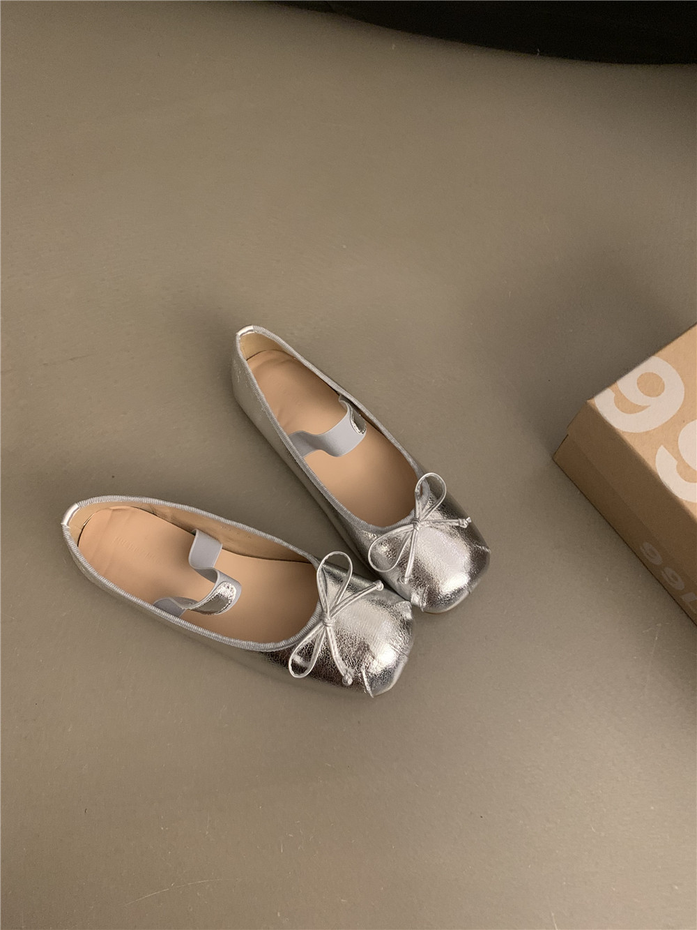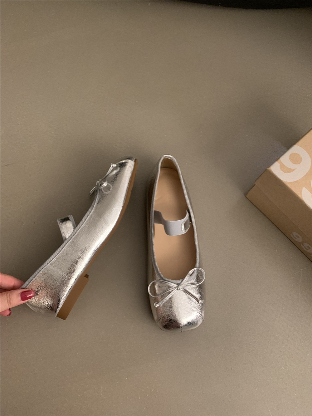 Серебряная плоская подошва обувь с бантиком, балетки, китайский стиль, французский стиль