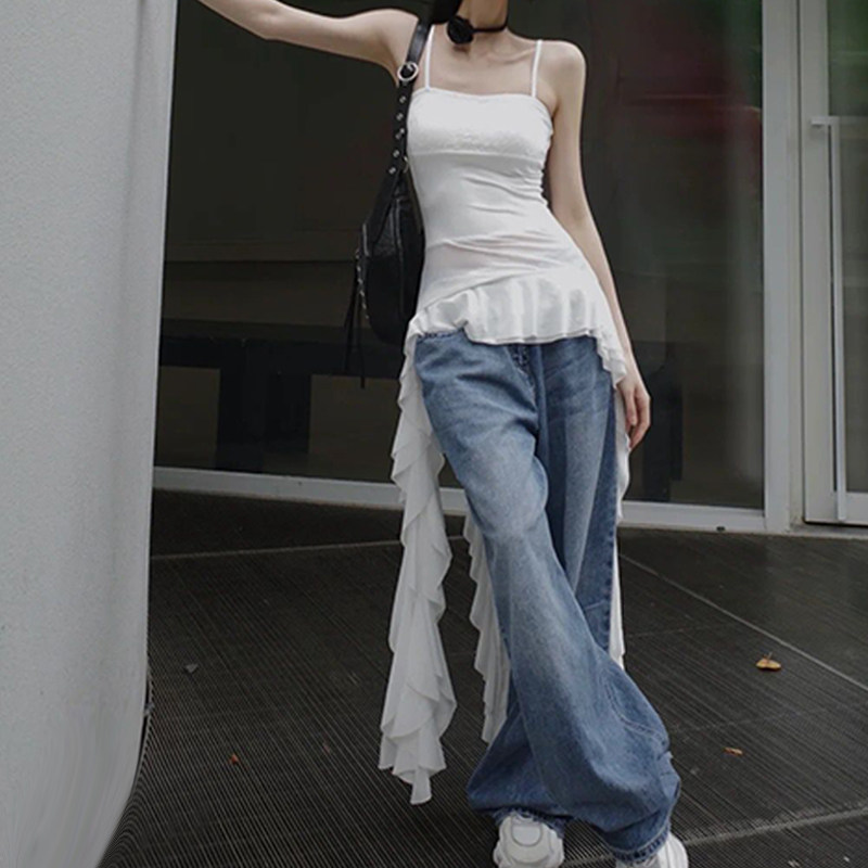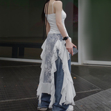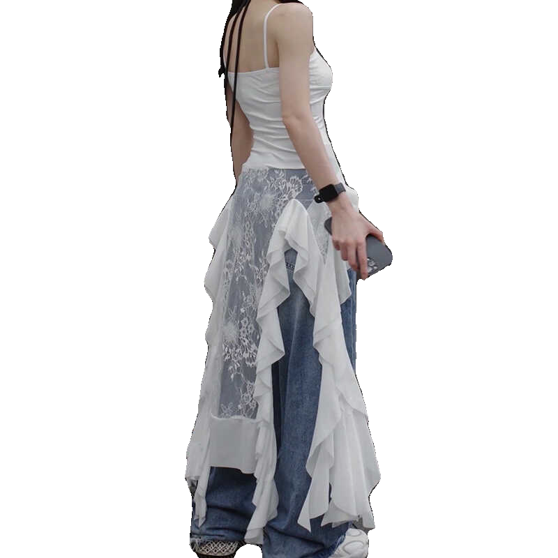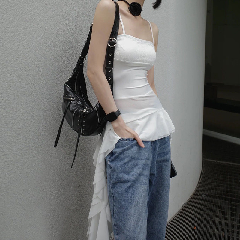 Кружевной длинный белый топ с чашечками, французский стиль
