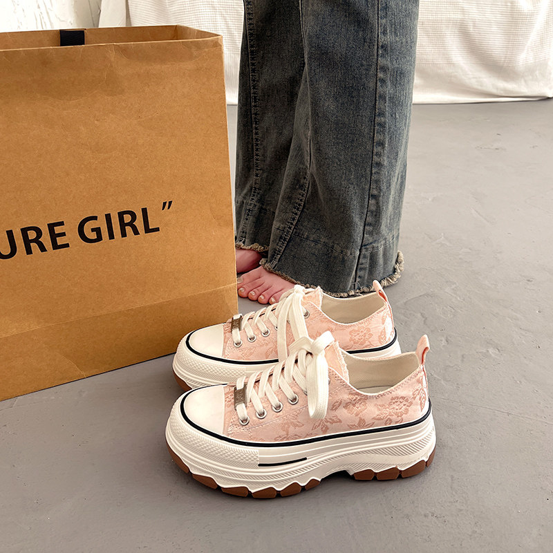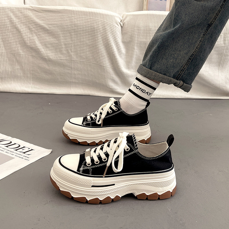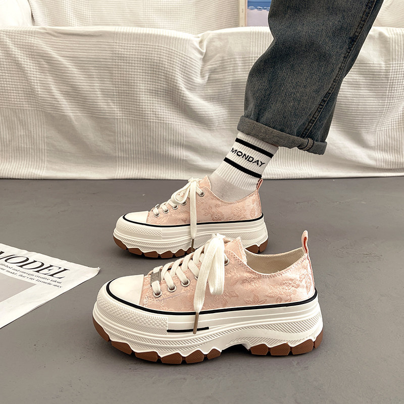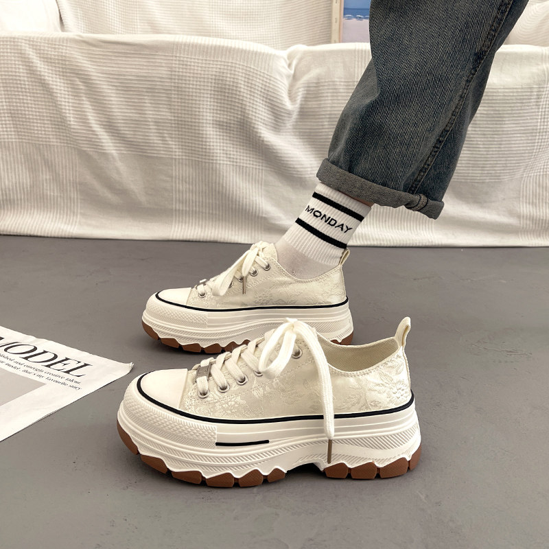 Универсальная тканевая летняя белая обувь на платформе, подходит с юбкой, кроссовки