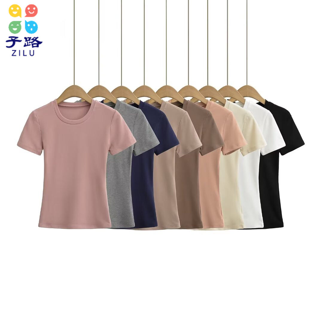 Базовая футболка с коротким рукавом с круглым воротником, европейский стиль
