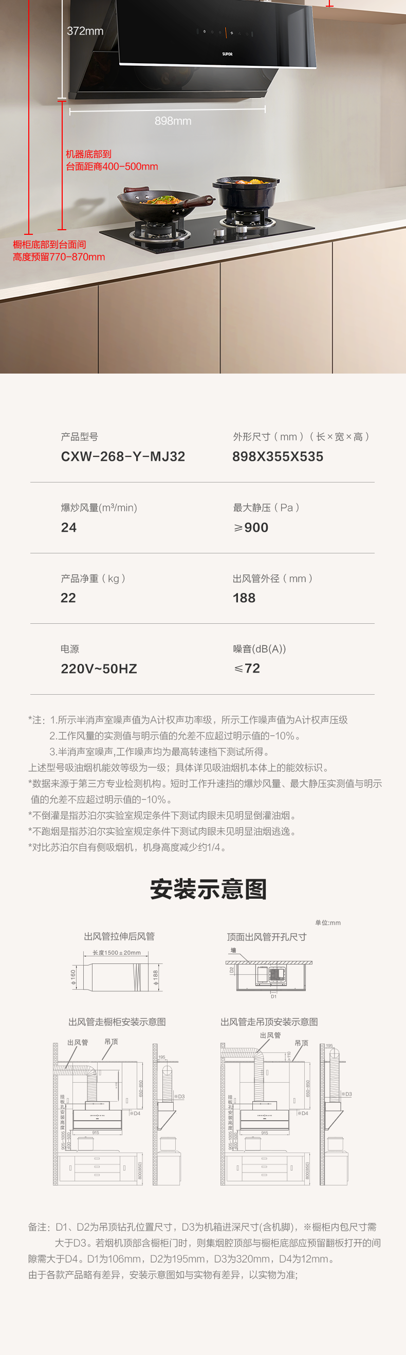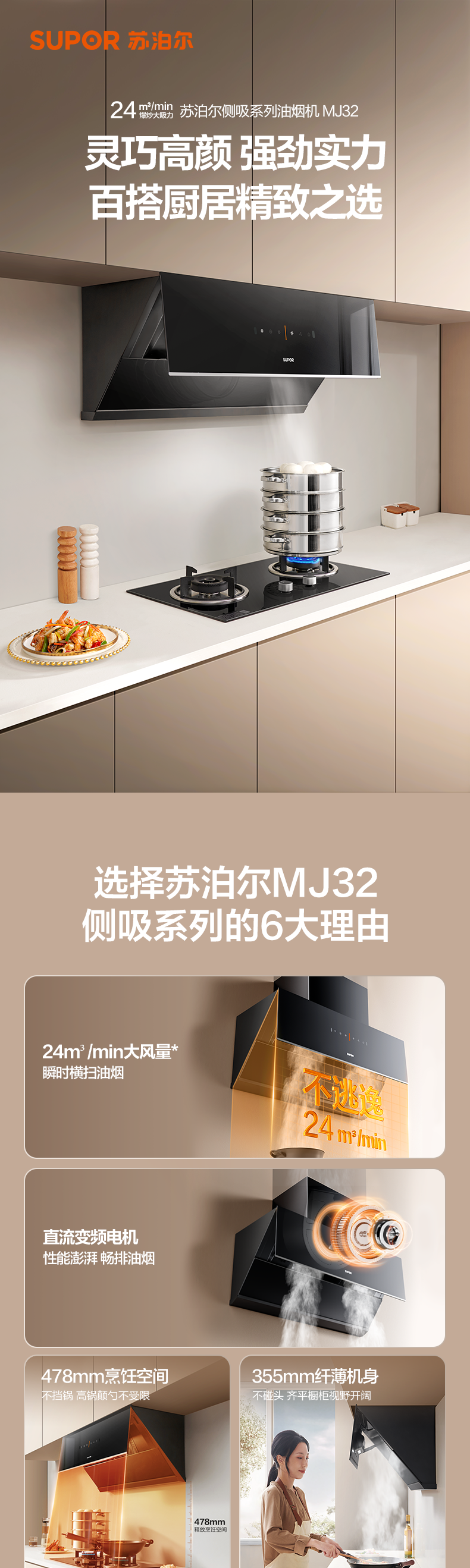 【Новый продукт】 Supor MJ32 переменная частота насосной боковой диапазон Hod Home Кухня Большая всасывающая выпускная капюшка