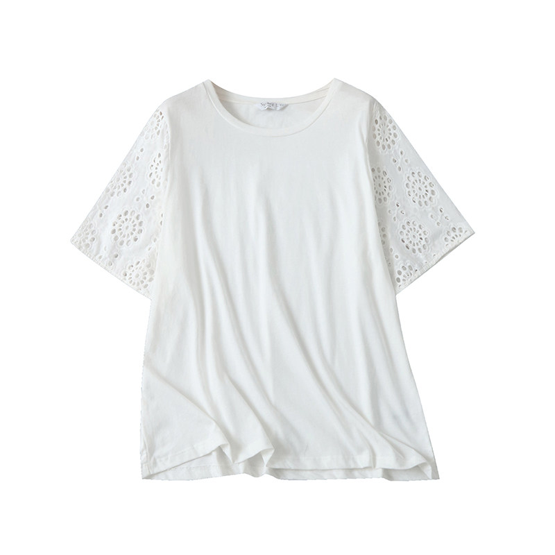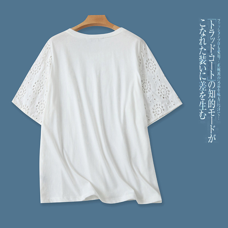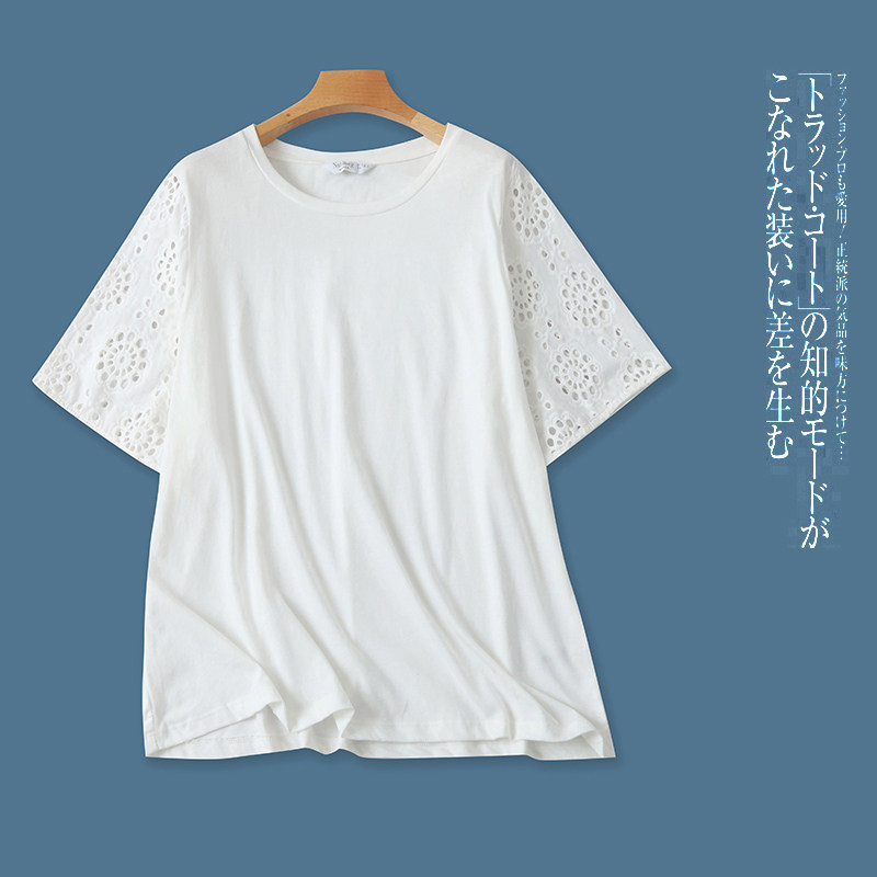 (Трансграничная торговля), хлопковая летняя эластичная футболка с круглым воротником, большой размер, с вышивкой, свободный крой