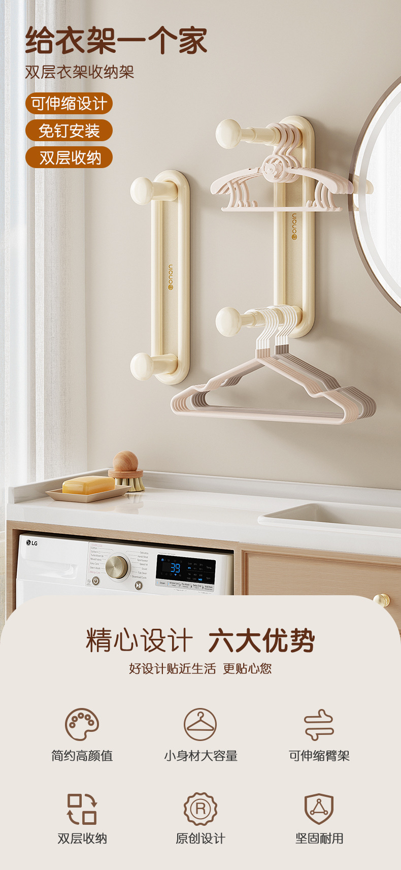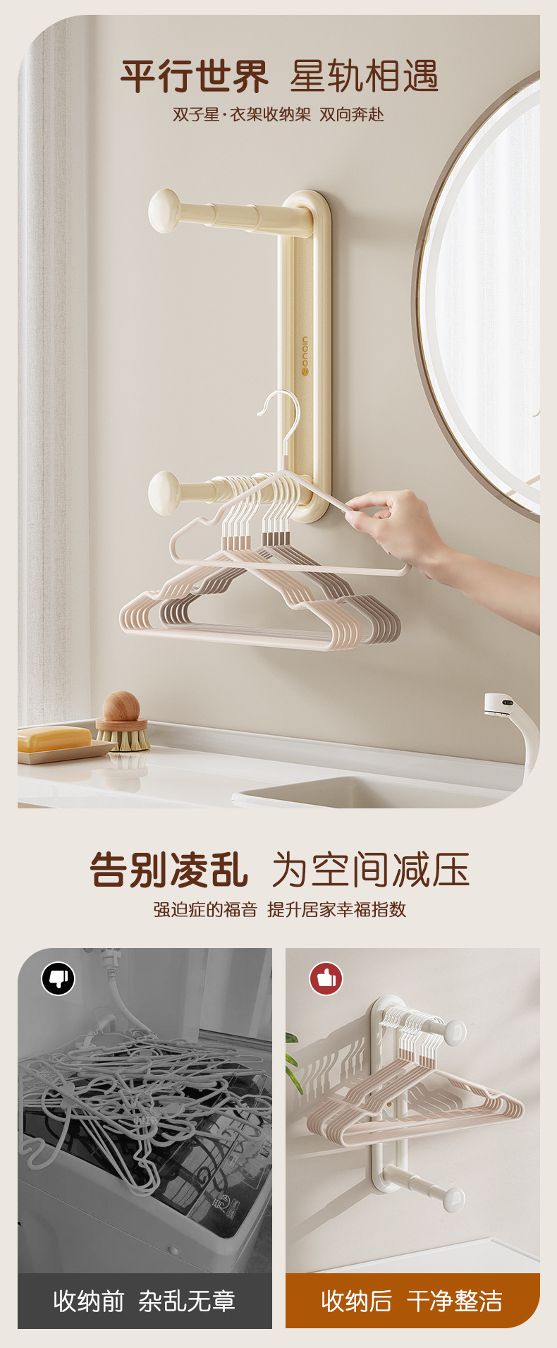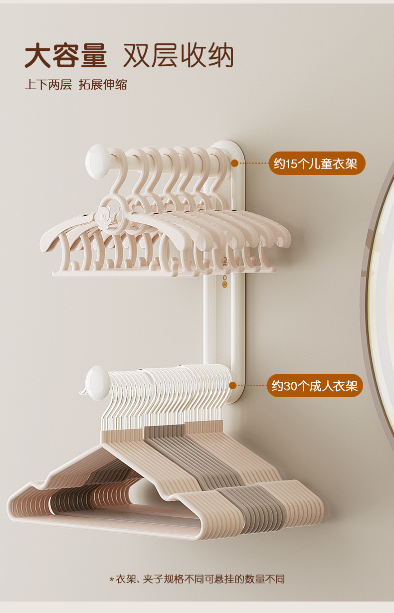 Вешалка, система хранения для домашнего использования, телескопический подвесной стержень, сушилка, фиксаторы в комплекте