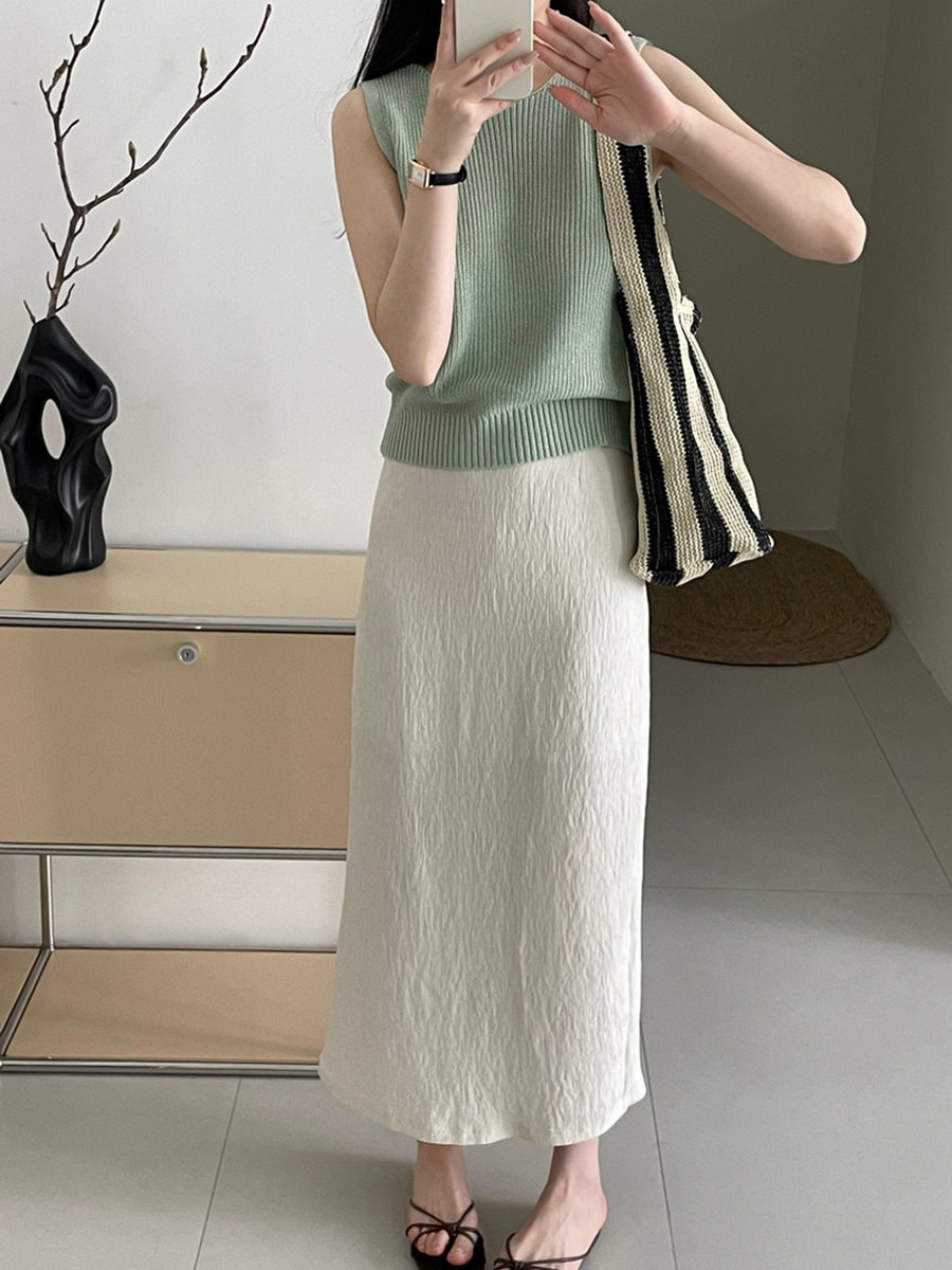 Светлая юбка, из хлопка и льна, изысканный стиль