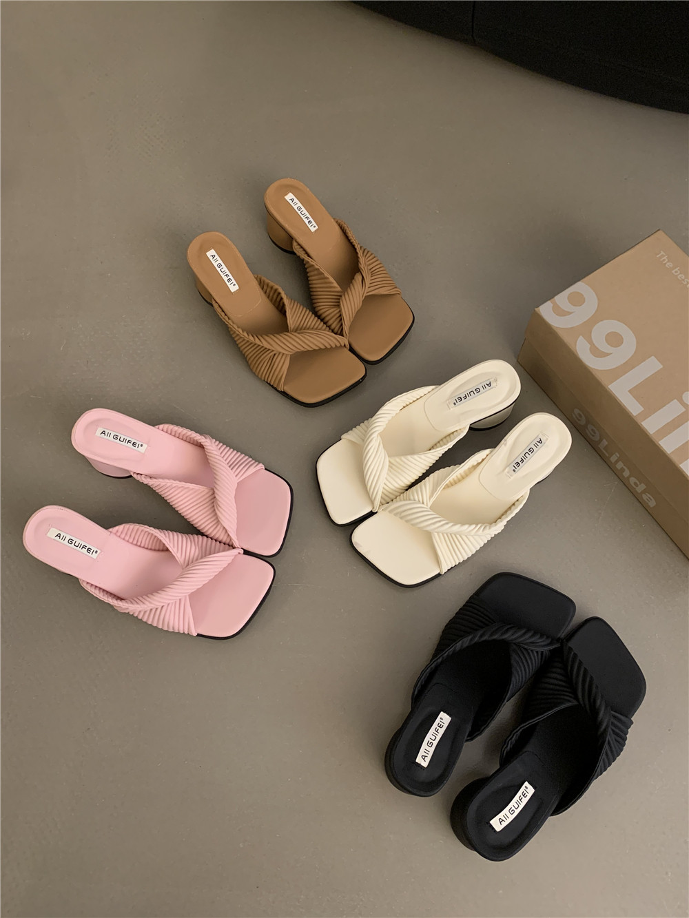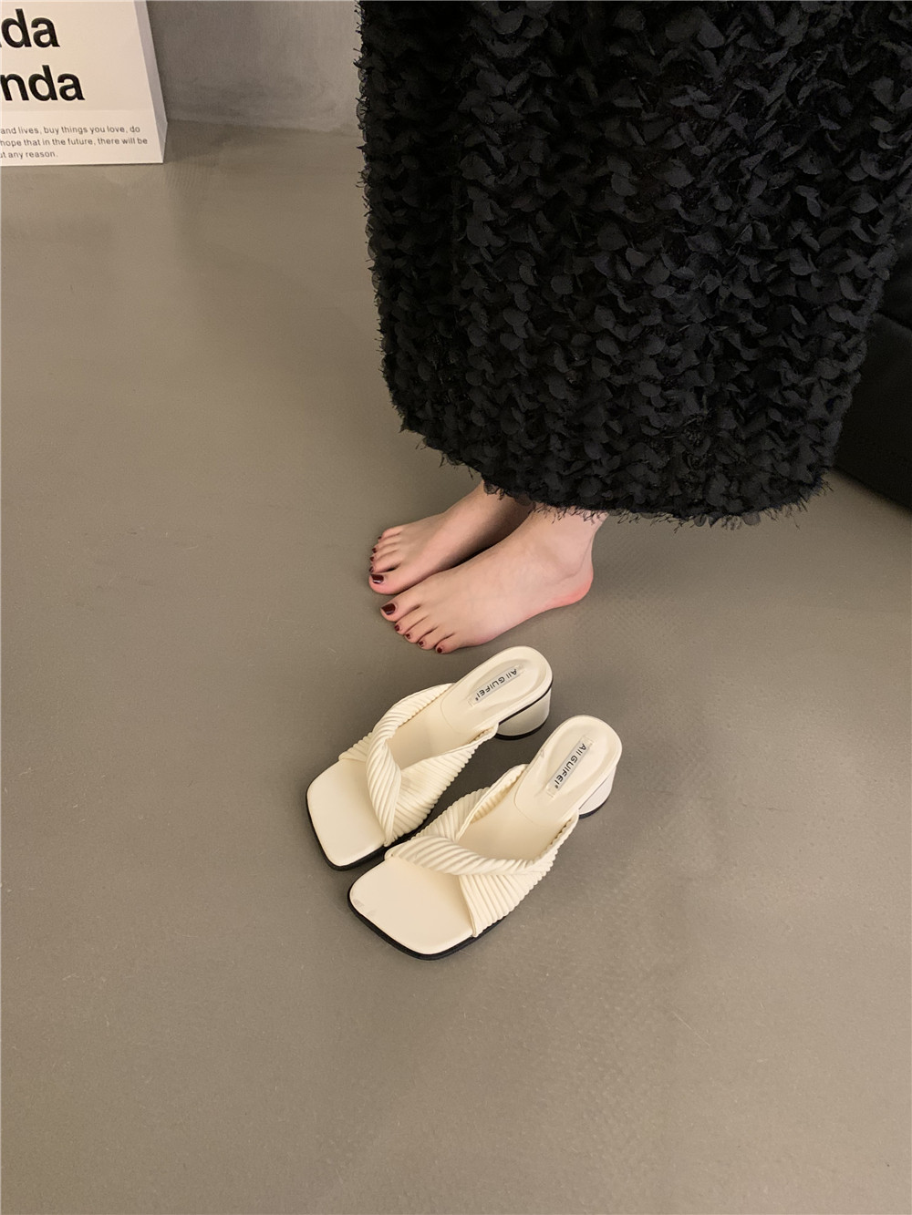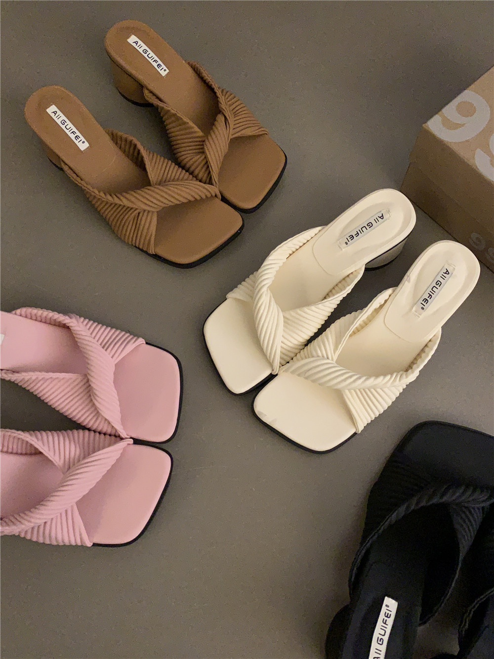 Ретро высокие слайдеры, обувь, демисезонная подходит с юбкой на высоком каблуке, сандалии, французский стиль
