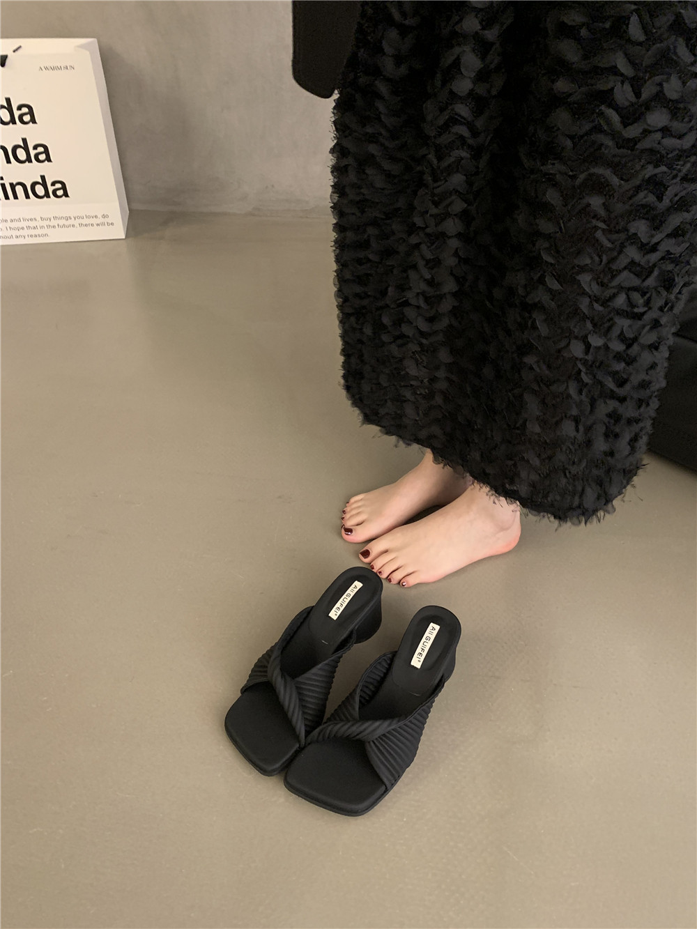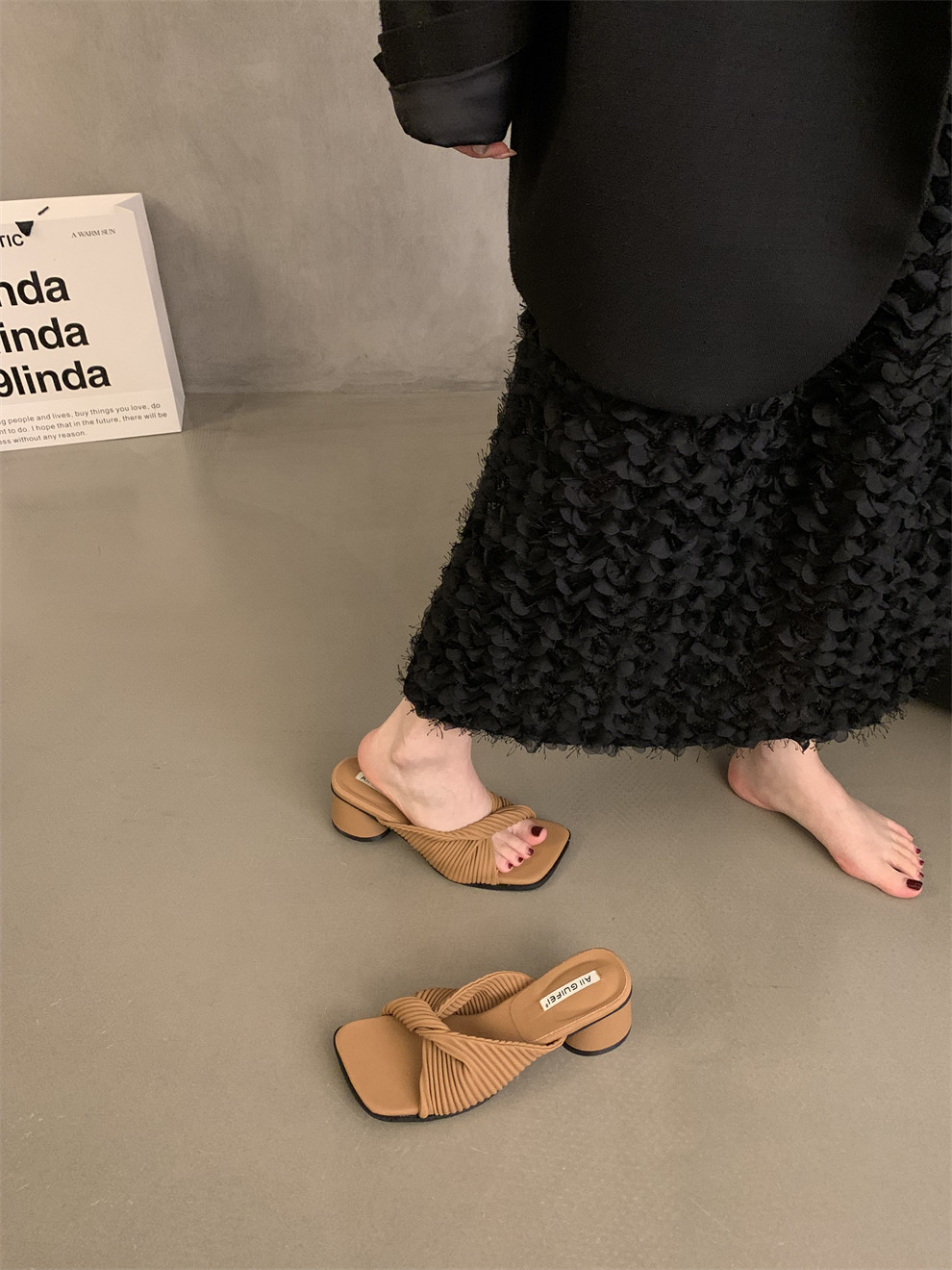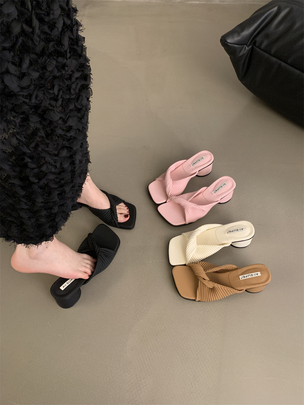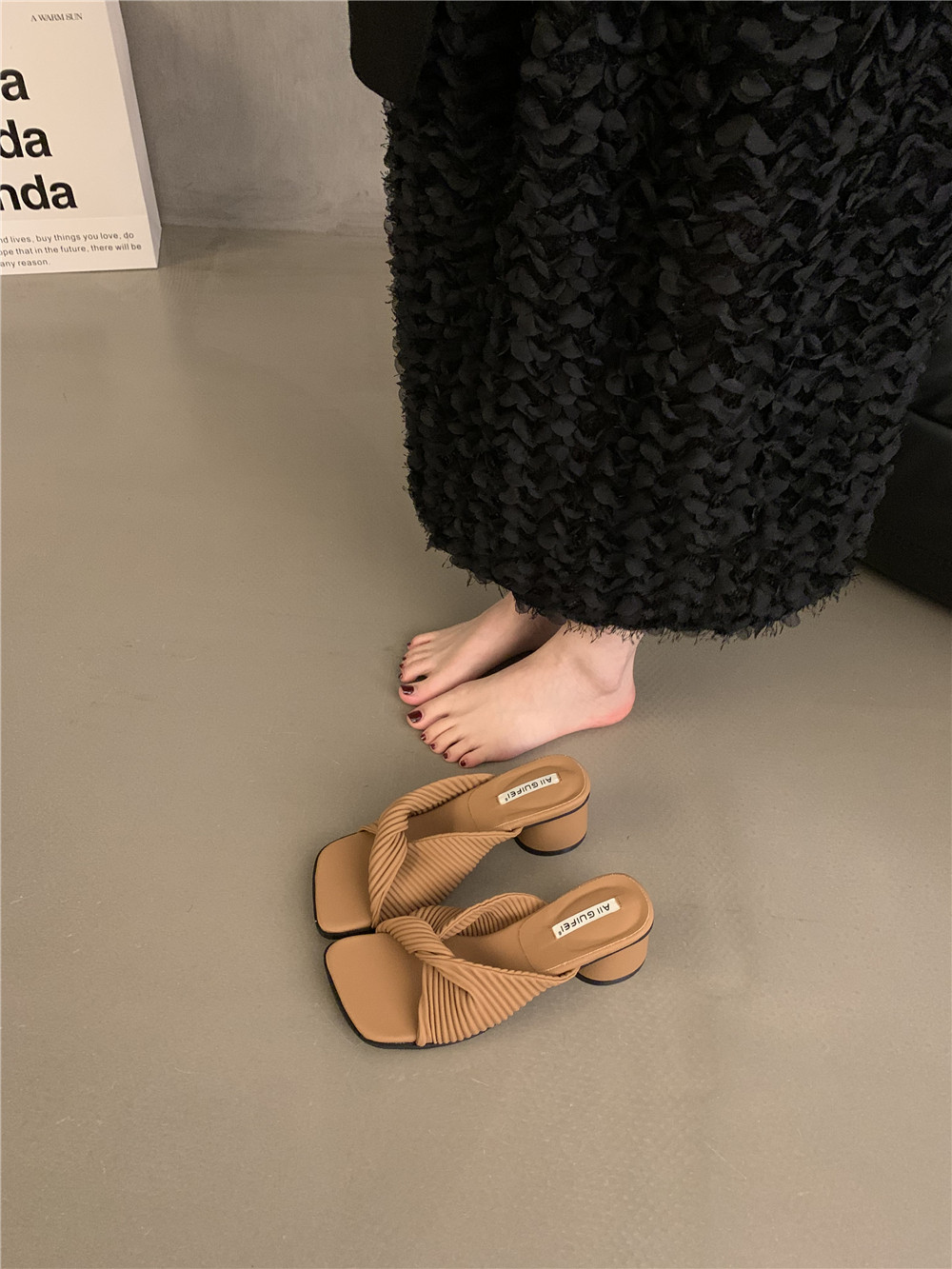 Ретро высокие слайдеры, обувь, демисезонная подходит с юбкой на высоком каблуке, сандалии, французский стиль