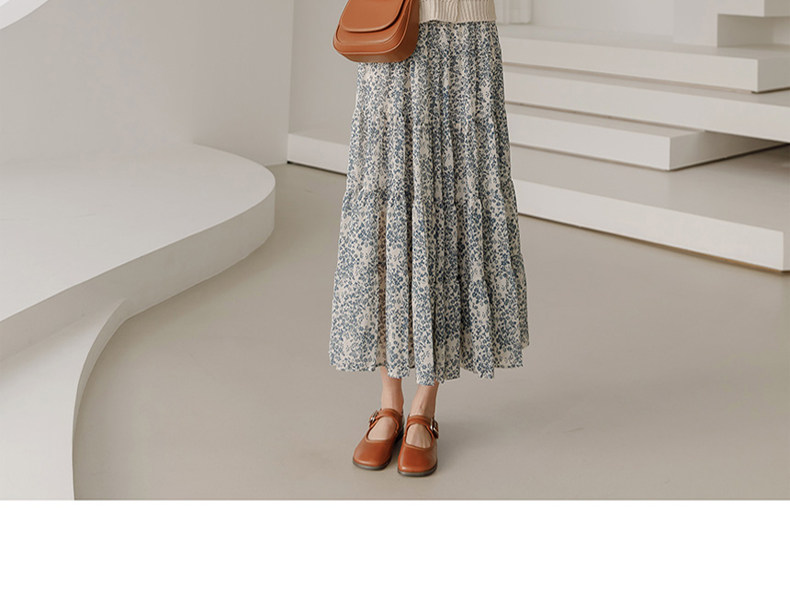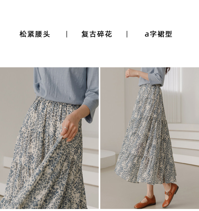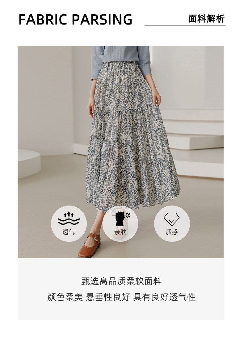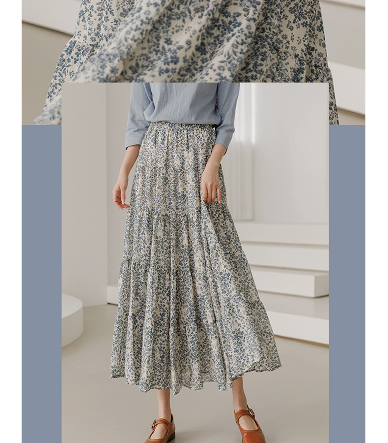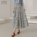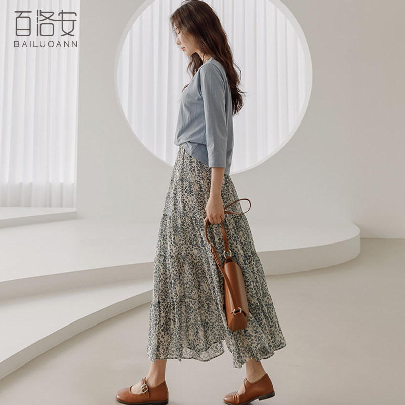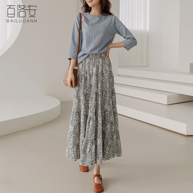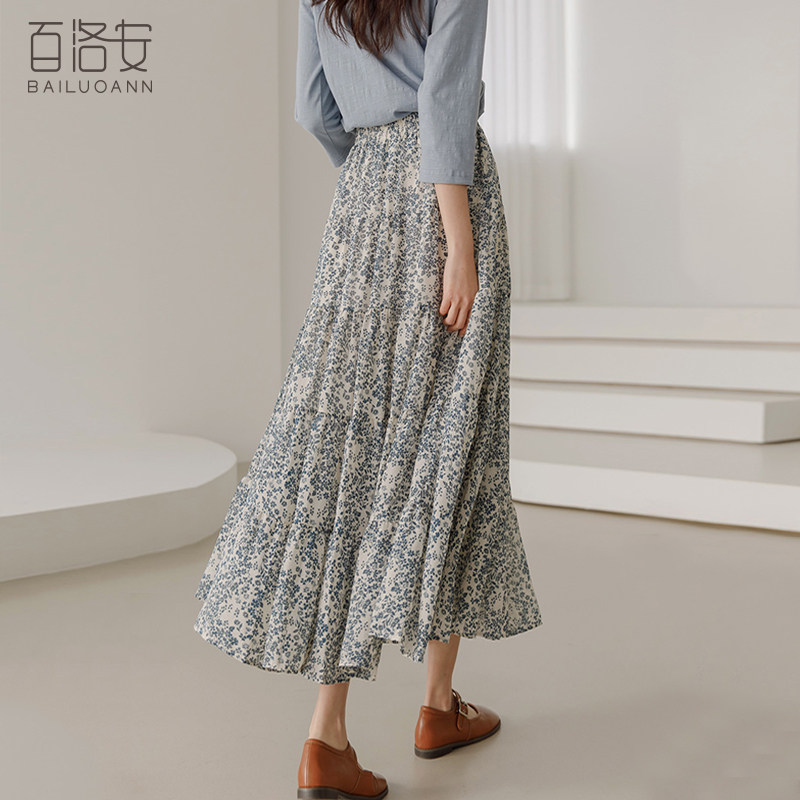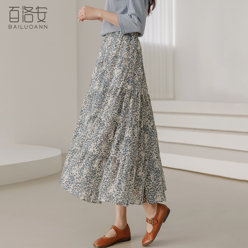 百洛安 Весенняя длинная юбка, цветочный принт, высокая талия, А-силуэт, длина миди