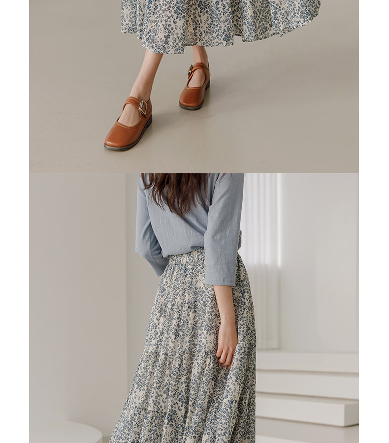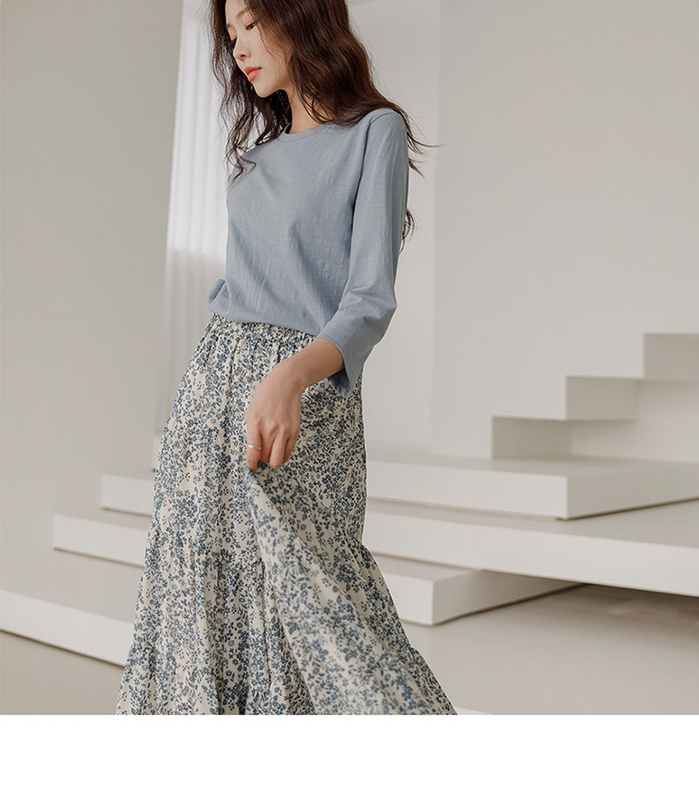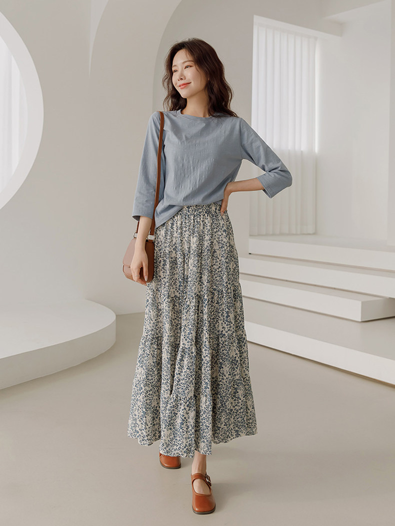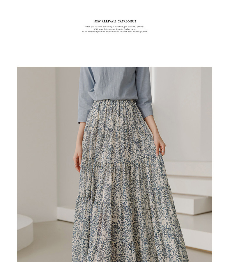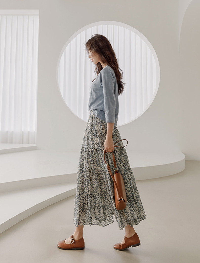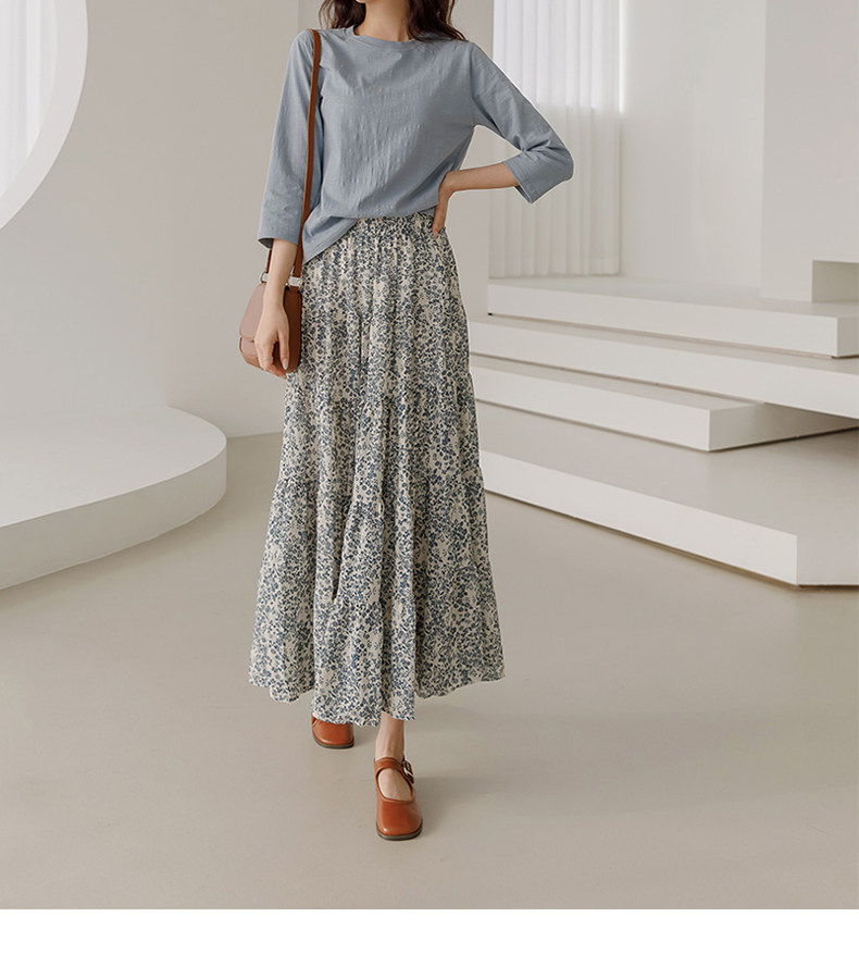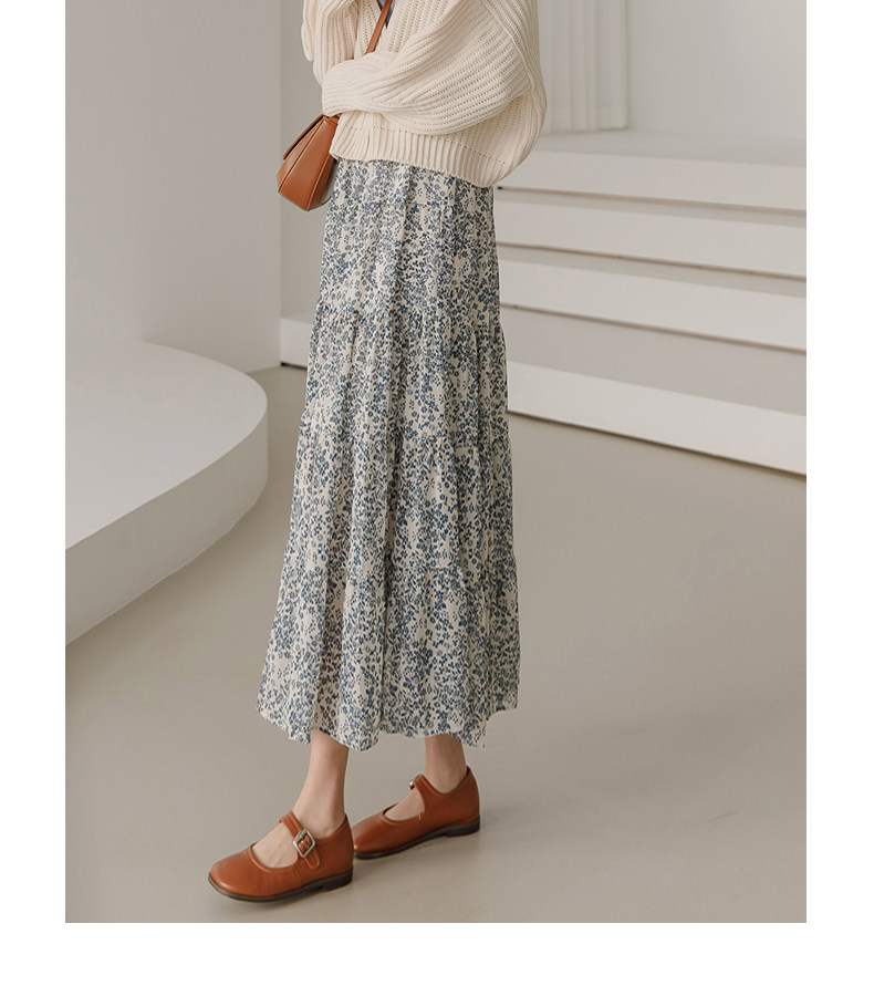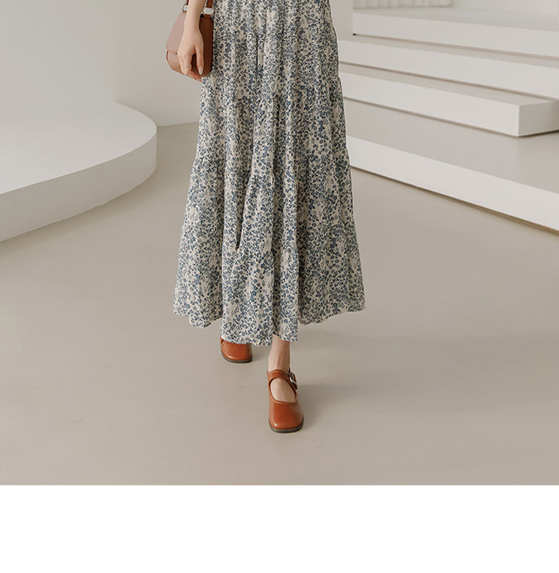 百洛安 Весенняя длинная юбка, цветочный принт, высокая талия, А-силуэт, длина миди