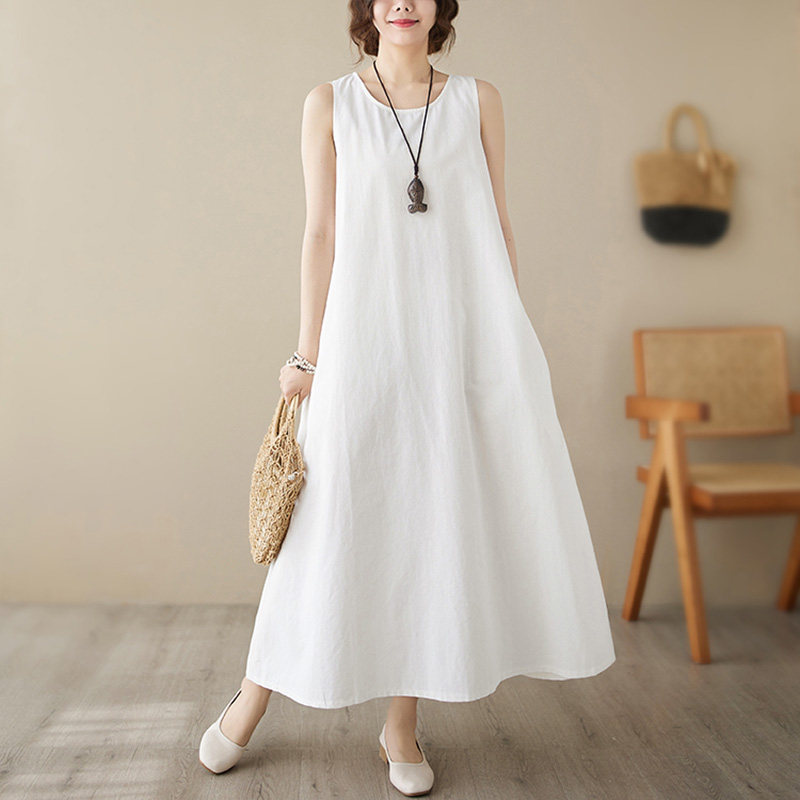 Летнее платье без рукавов, юбка, платье-комбинация, из хлопка и льна, городской стиль, большой размер