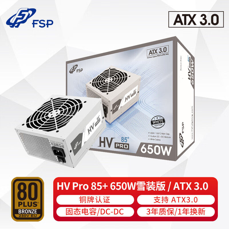 Quanhan FSP Rated 650W HVPro650W Snow Edition ATX3.0 Power 80plus Сертификация бронзовой медаль 750