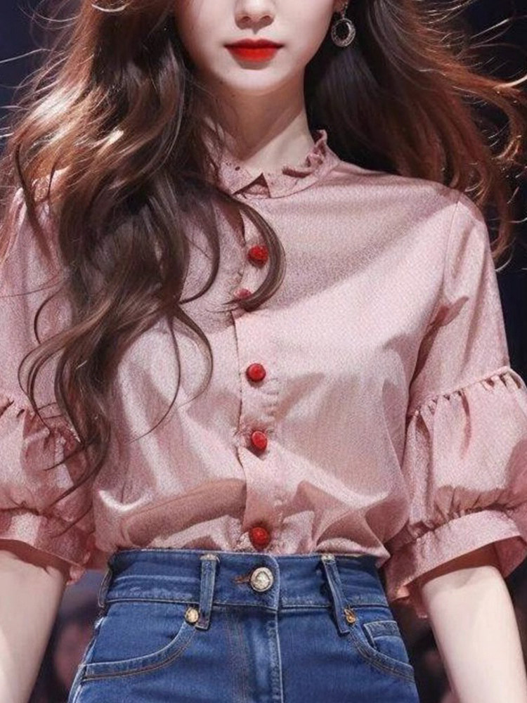 Весенняя летняя красная рубашка, китайский стиль, 2024 года