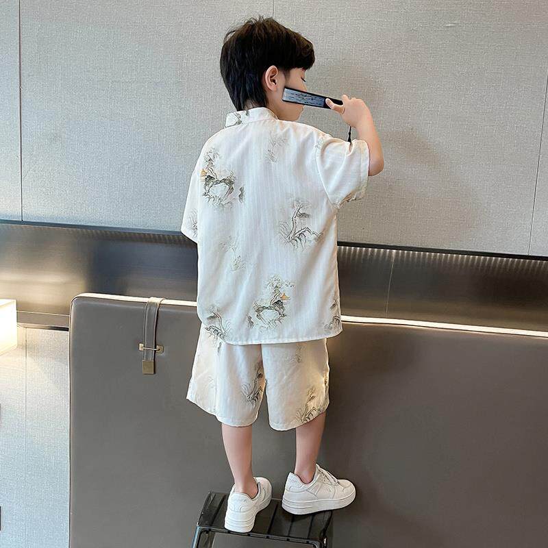 Детская летняя одежда, ханьфу, комплект, летняя форма для мальчиков, подходит для подростков, китайский стиль