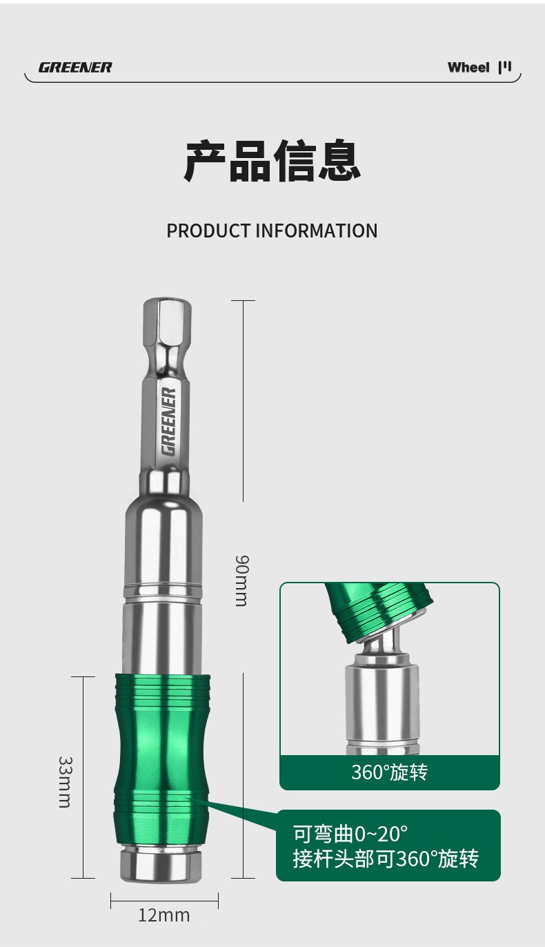 Зеленый лес Многоугольный пакетный стержень Удлиняющий стержень Магнитный универсальный винт Электрический рулевой рулевой угловой адаптер