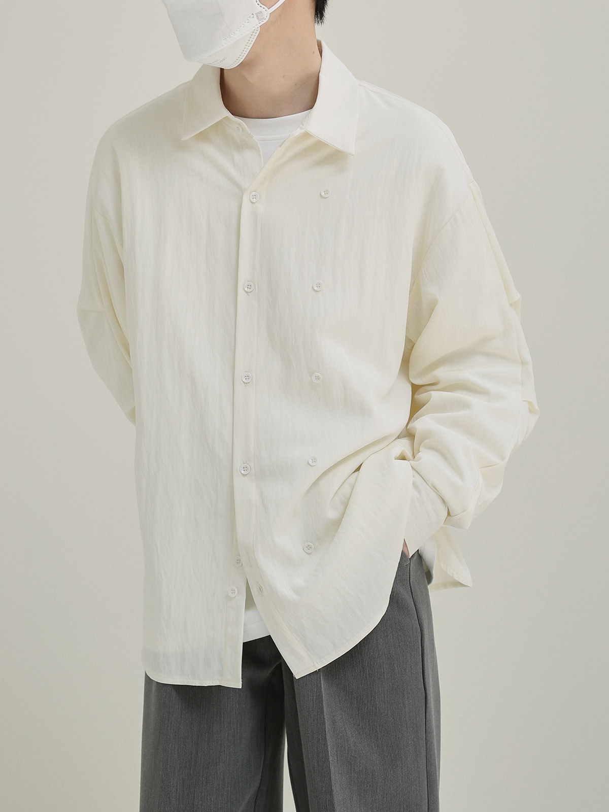Дышащая рубашка, свободный крой, в корейском стиле