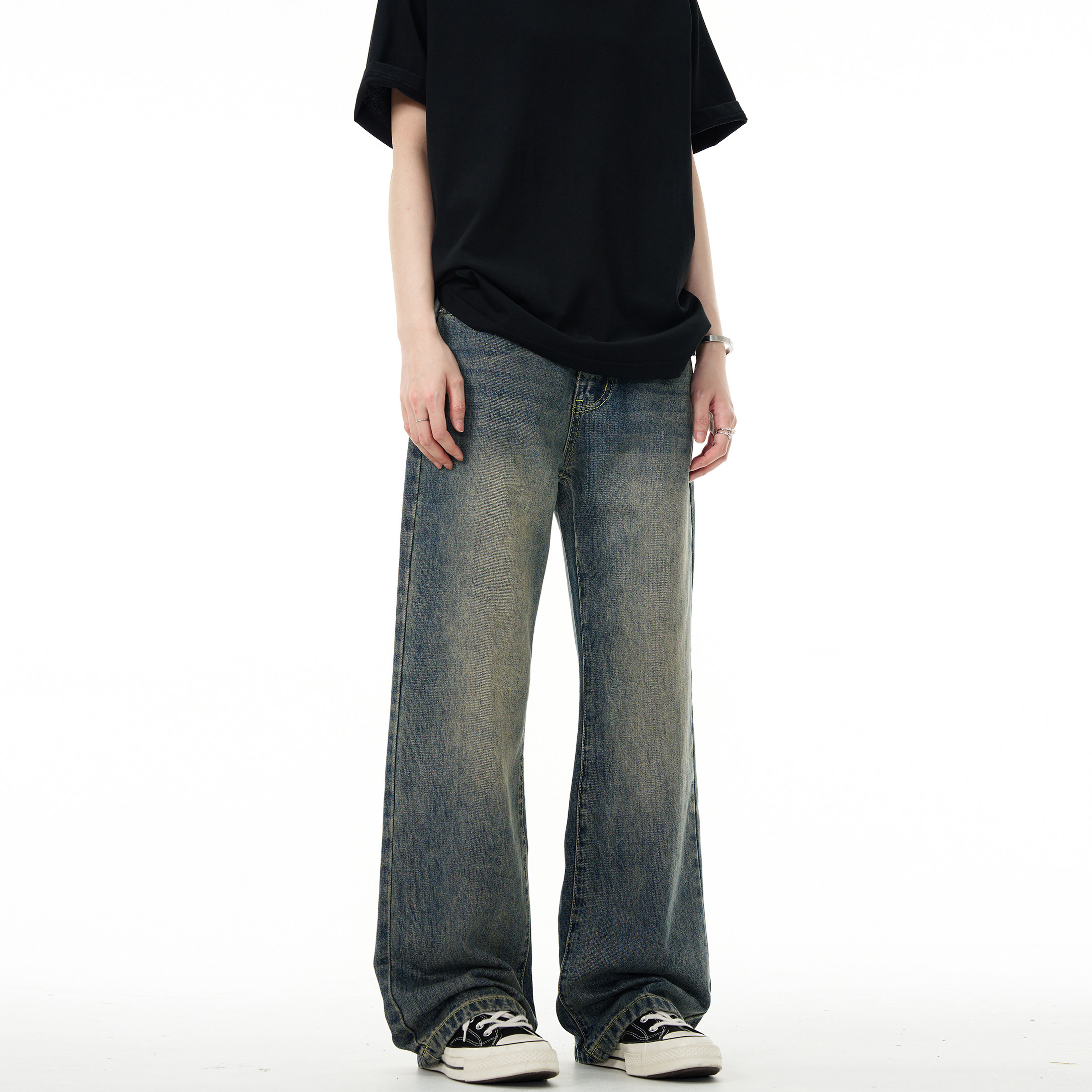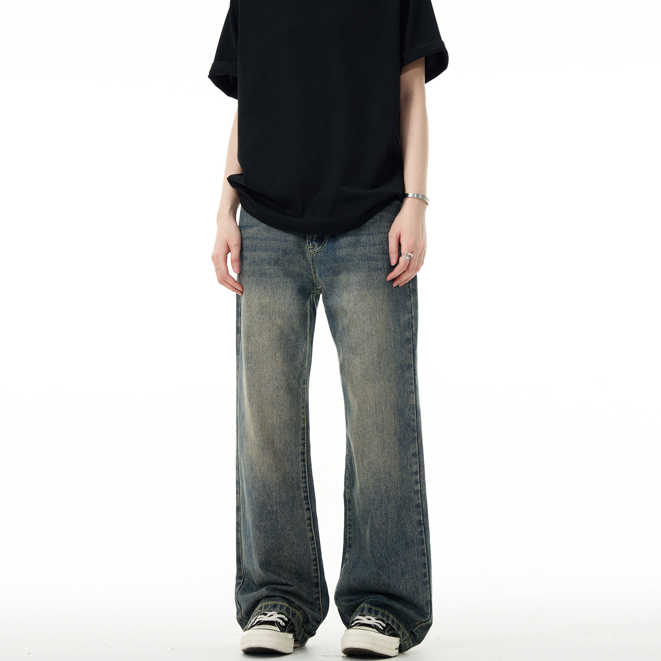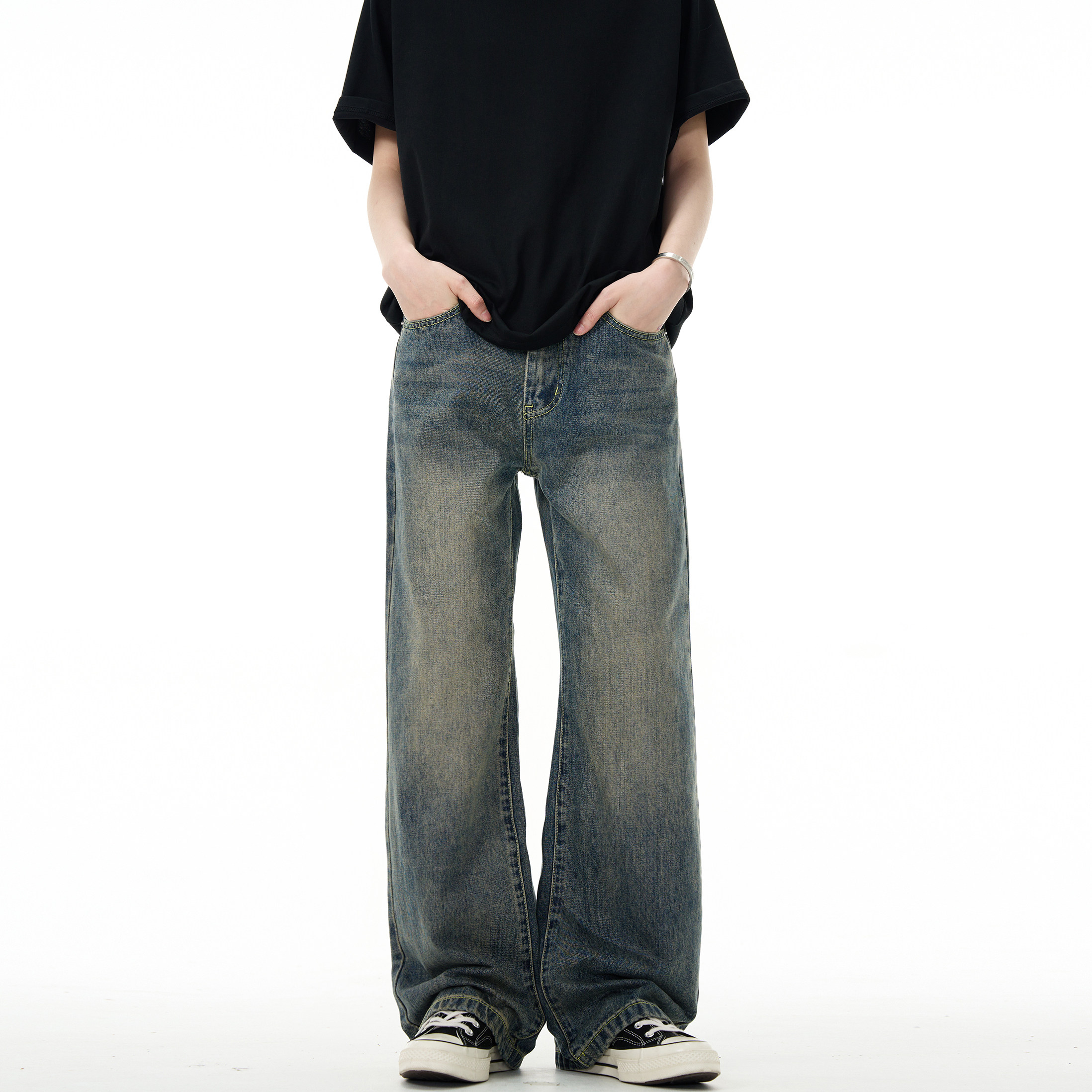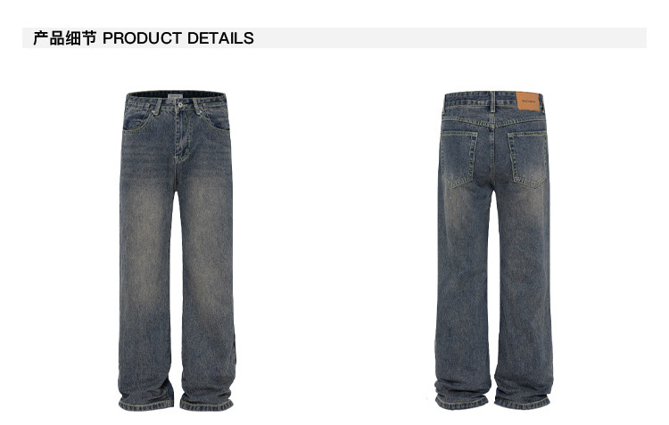 MADWITCH Прямые мужские джинсы в стиле ретро в стиле ретро для мужчин, простые универсальные повседневные брюки для улицы