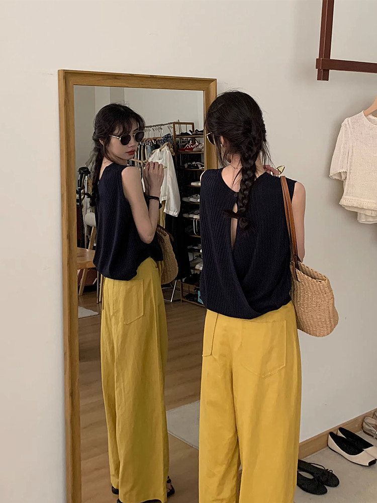 Трикотажный жилет, тонкая летняя майка топ, футболка без рукавов, эффект подтяжки, свободный крой