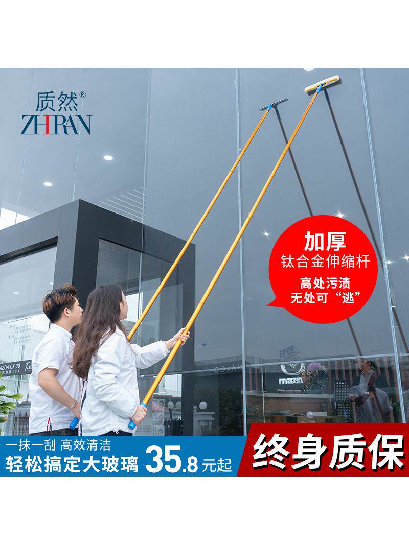Протрите стеклянный артефакт и вытяните телескопический стержень дома для мытья стеклянной дверной поверхности, чтобы очистить потолочный инструмент высокого риска