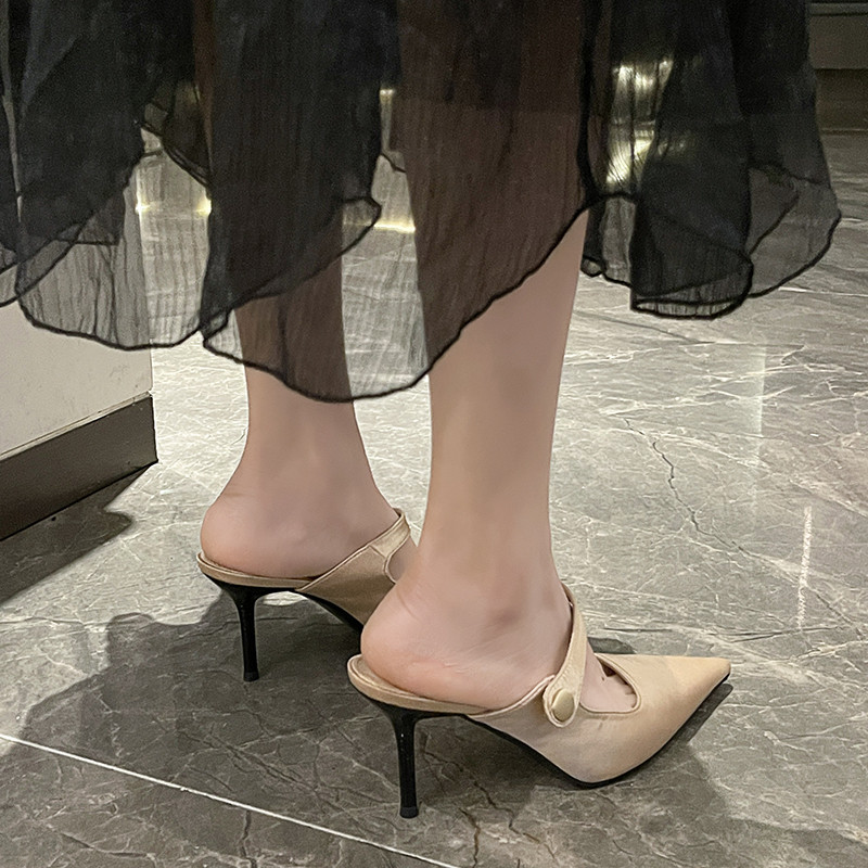 Туфли на высоком каблуке, весенняя летняя обувь, тапочки с заостренным носом, французский стиль, изысканный стиль